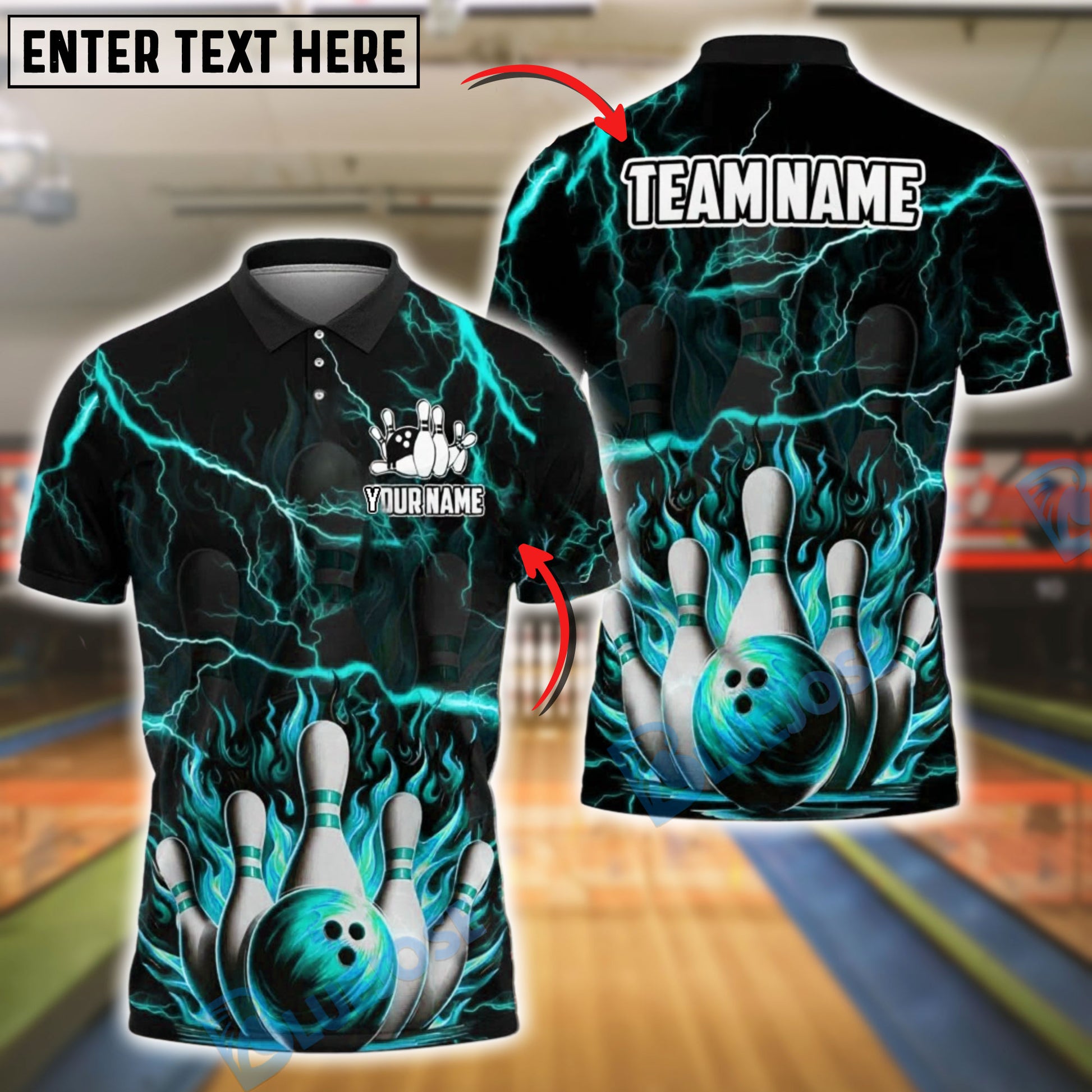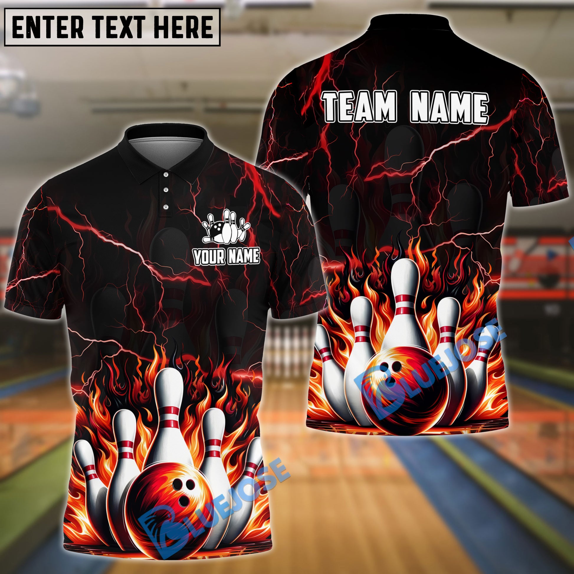 BlueJose Bowling And Pins Inferno Strike Customized Name, Team Name 3D Shirt (4 Colors)