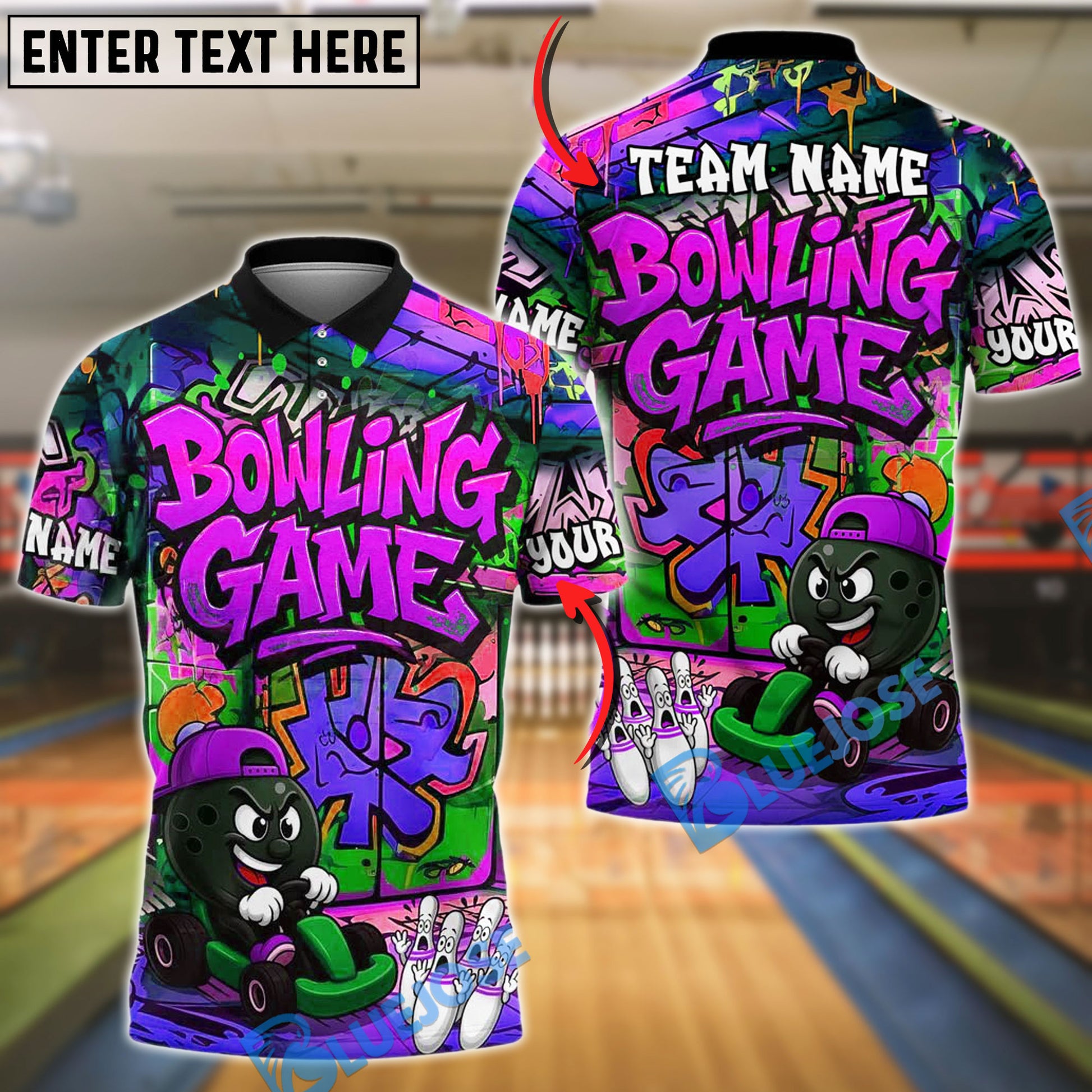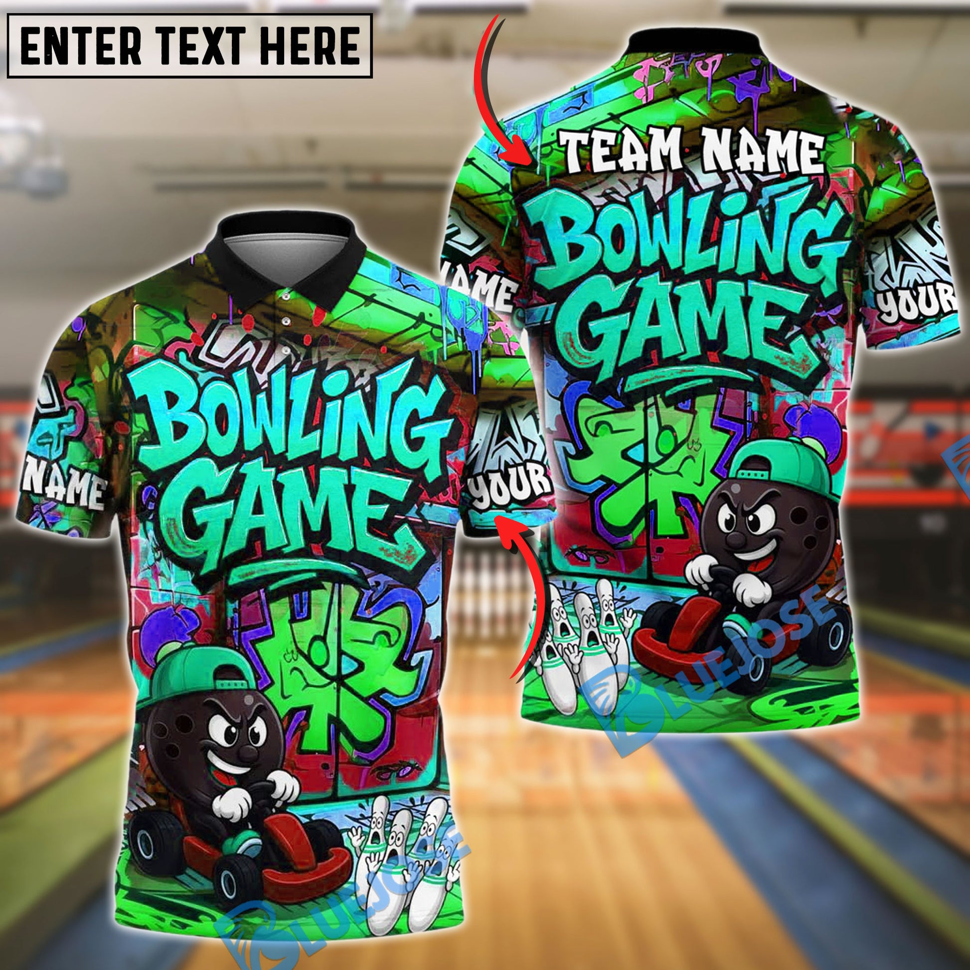 BlueJose Bowling And Pins Kart Graffiti Cartoon Street Style Customized Name, Team Name 3D Shirt (4 Colors)