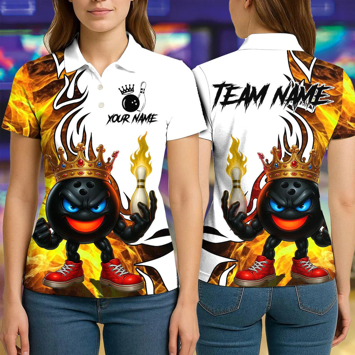 BlueJose Bowling And Pins King Flame Ball 2 Customized Name, Team Name 3D Shirt (4 Colors)