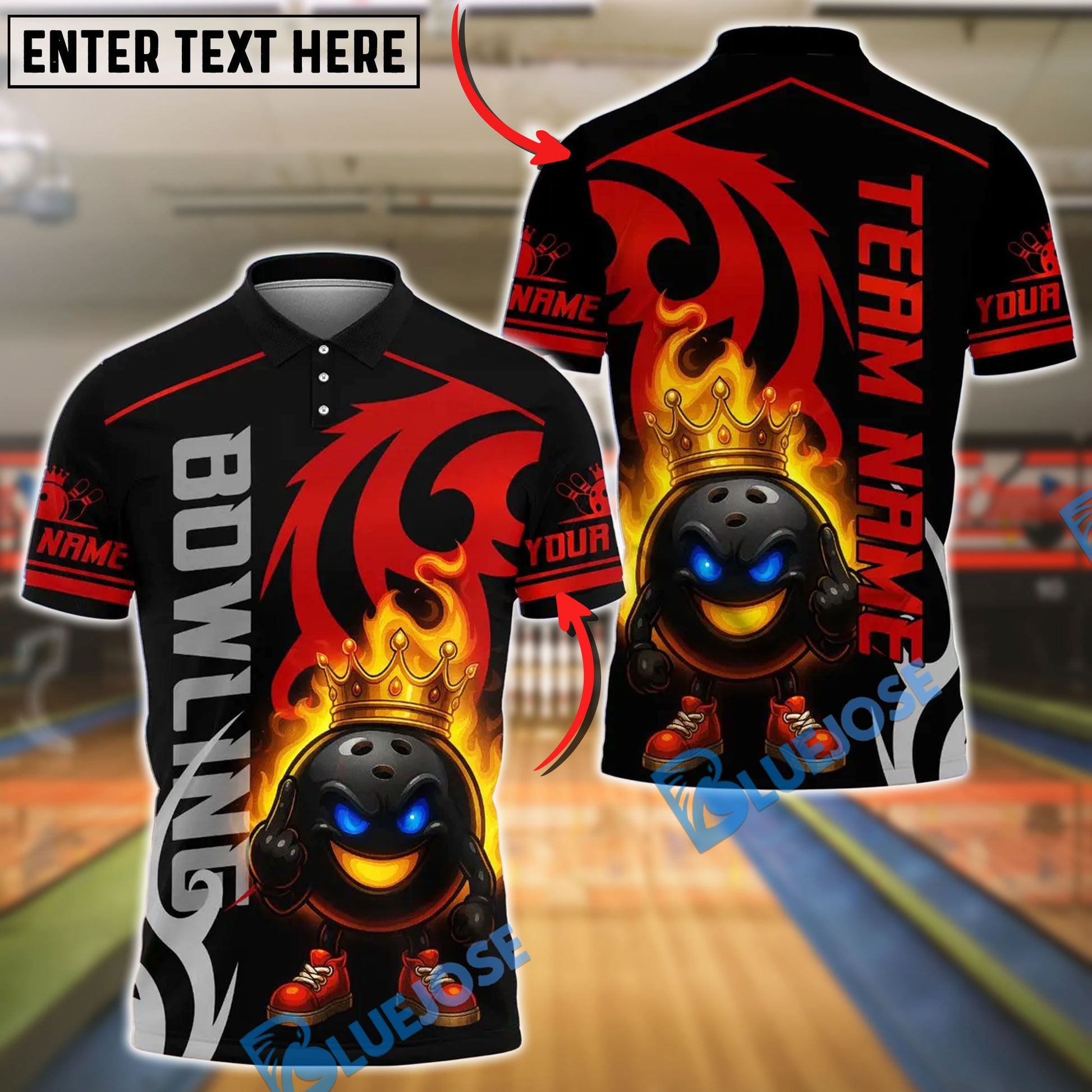 BlueJose Bowling And Pins King Pins Flame Premium Customized Name, Team Name 3D Shirt (4 Colors)