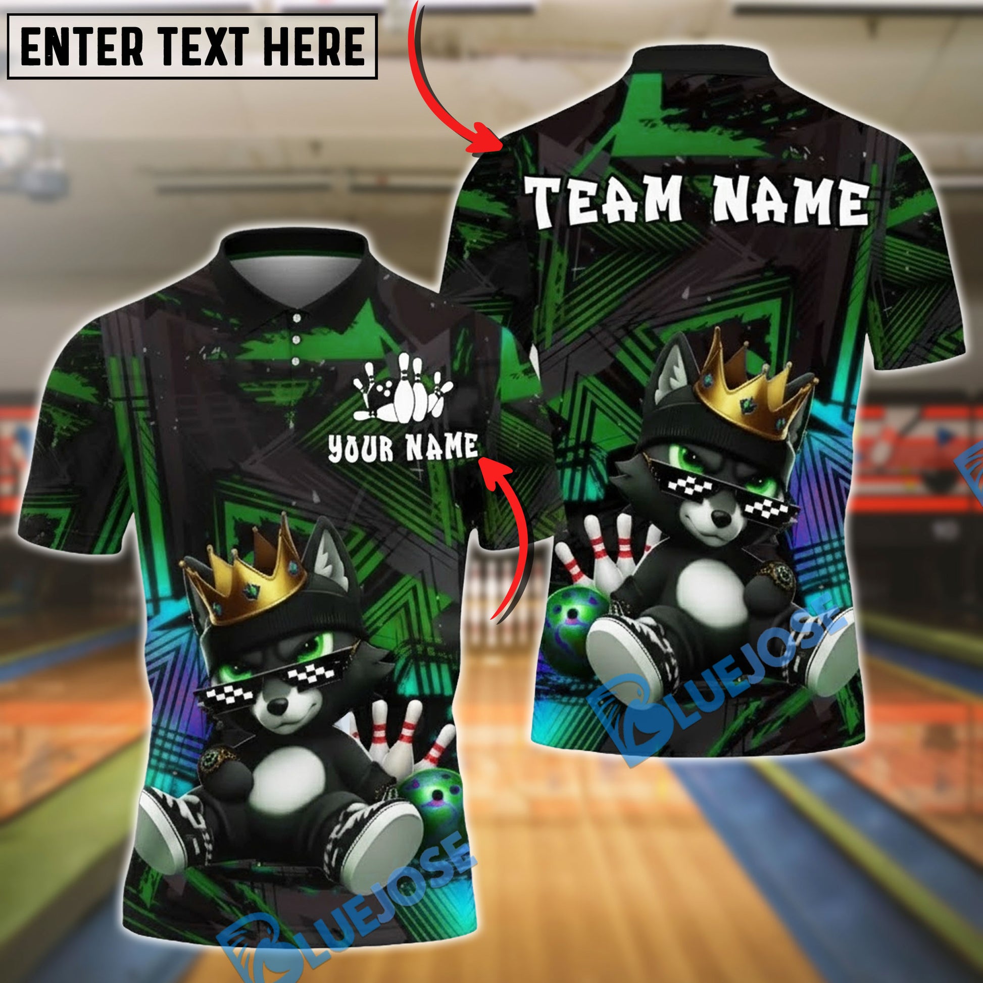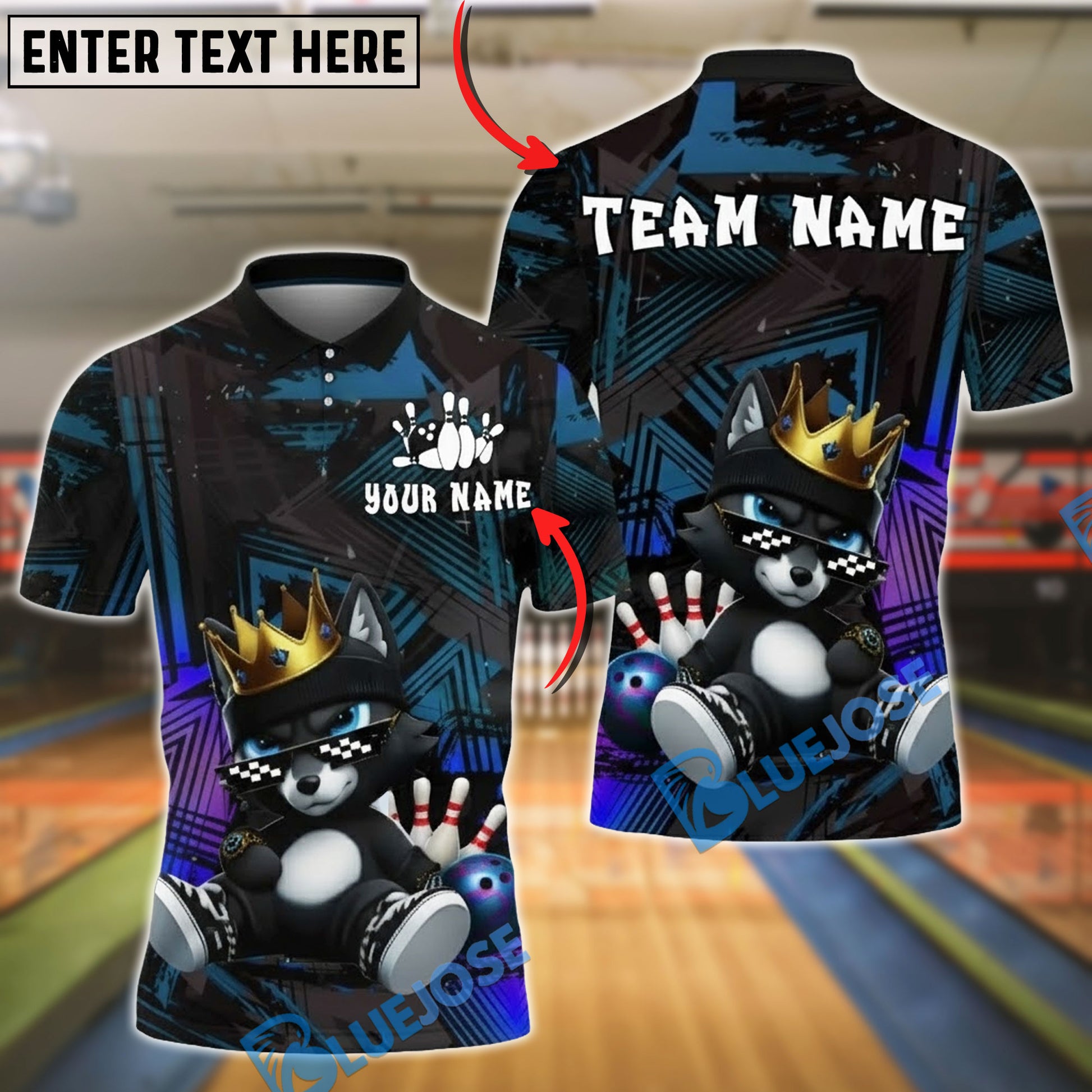 BlueJose Bowling And Pins King Wolf Cartoon Graffiti Style Customized Name, Team Name 3D Shirt (4 Colors)