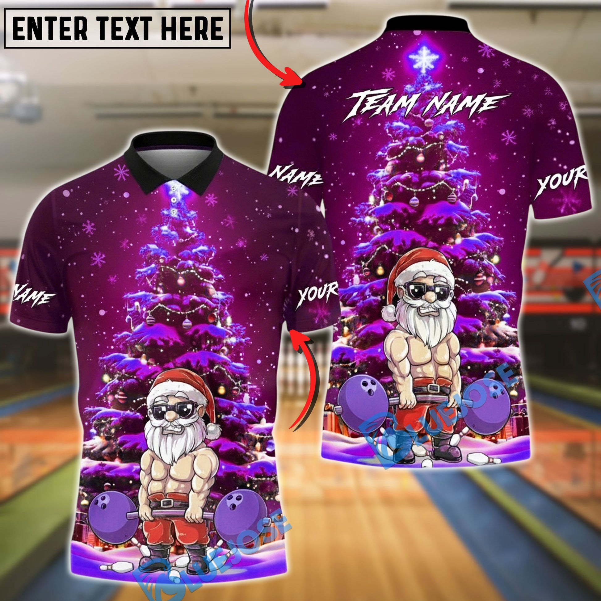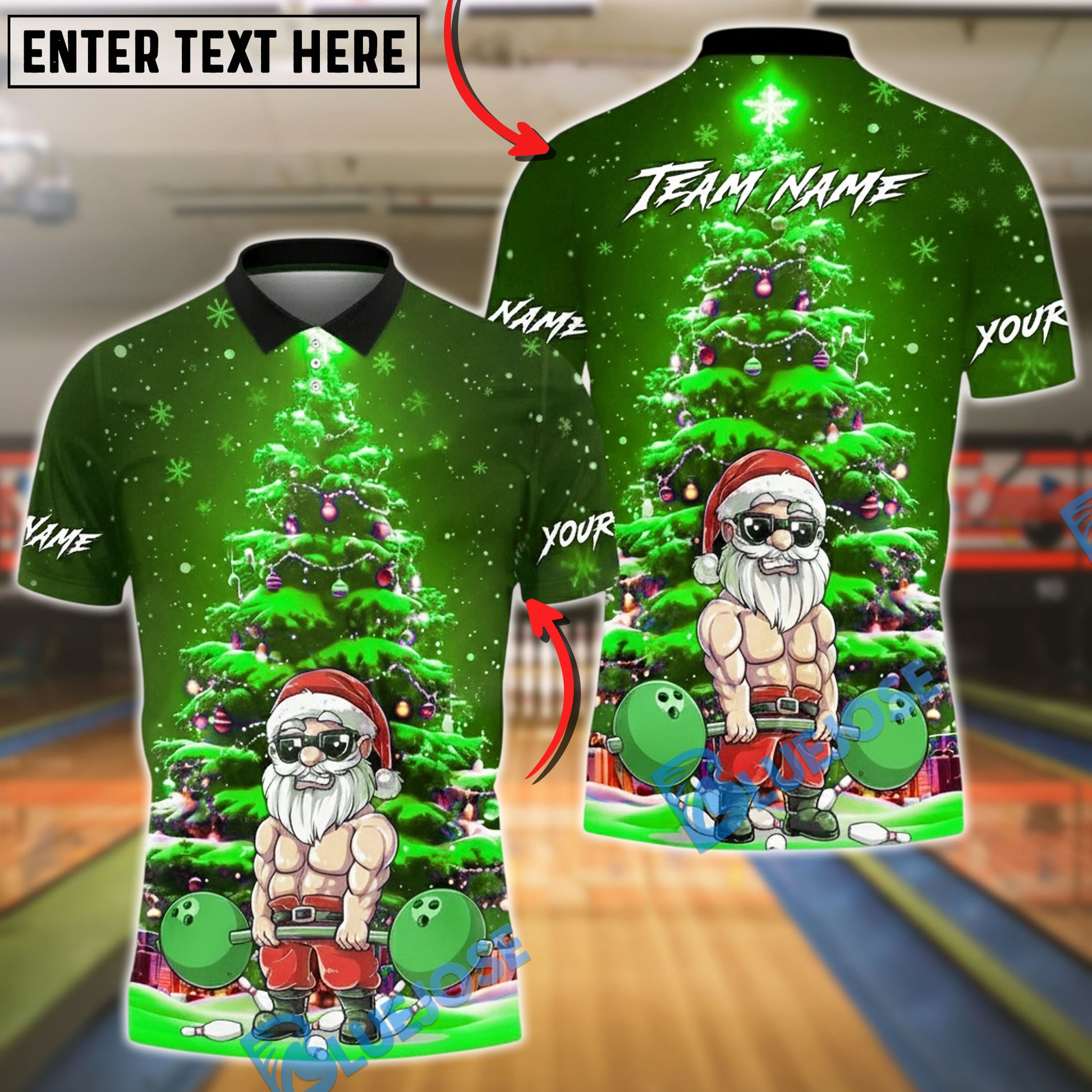 BlueJose Bowling And Pins Muscular Santa Christmas Tree Night Scene Customized Name, Team Name 3D Shirt (4 Colors)
