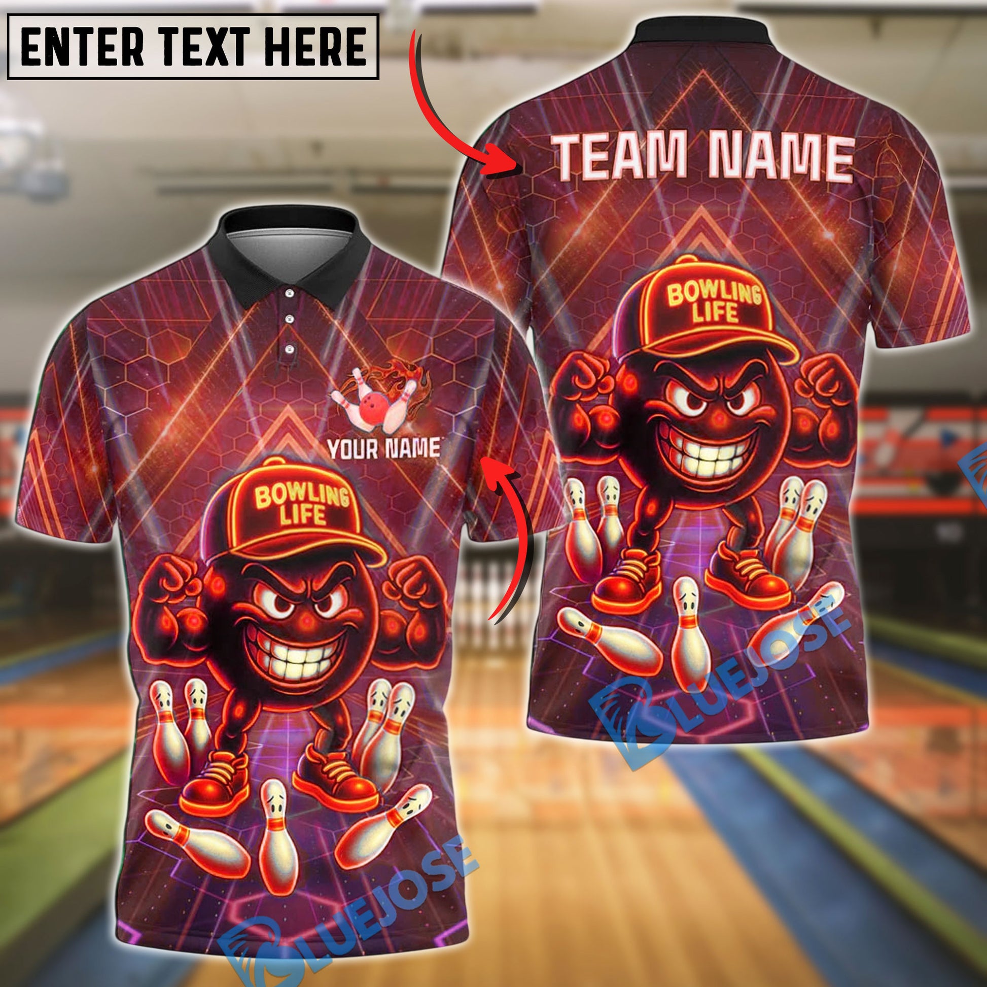 BlueJose Bowling And Pins Neon Bowling Life Cartoon Ball With Pins Customized Name 3D Shirt (4 Colors)