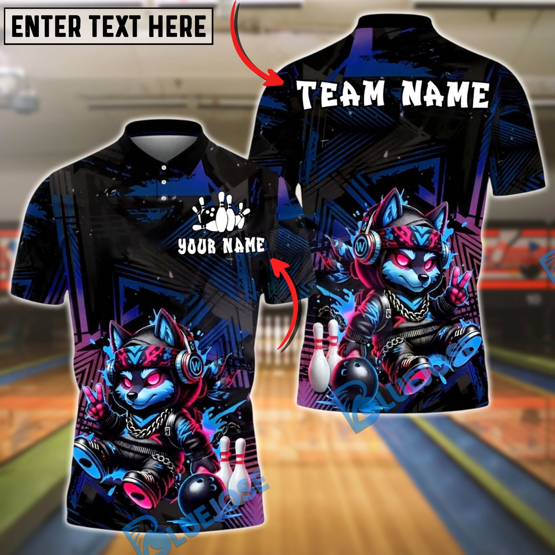 BlueJose Bowling And Pins Neon Cyber Wolf Cartoon Customized Name, Team Name 3D Shirt (4 Colors)