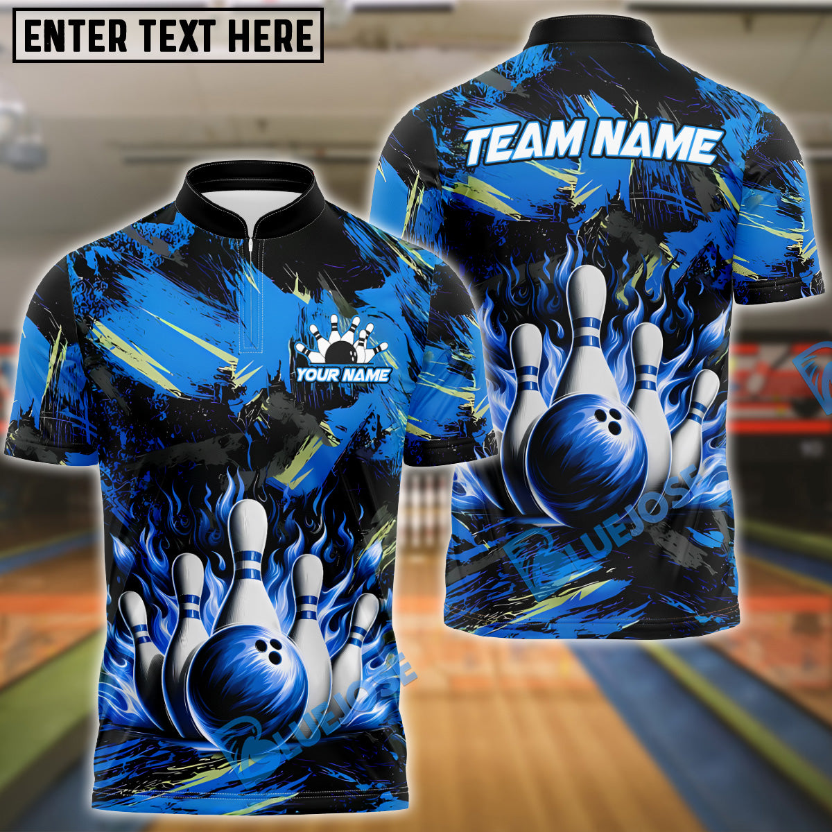BlueJose Bowling And Pins Neon Flame Customized Name 3D Shirt (4 Colors)