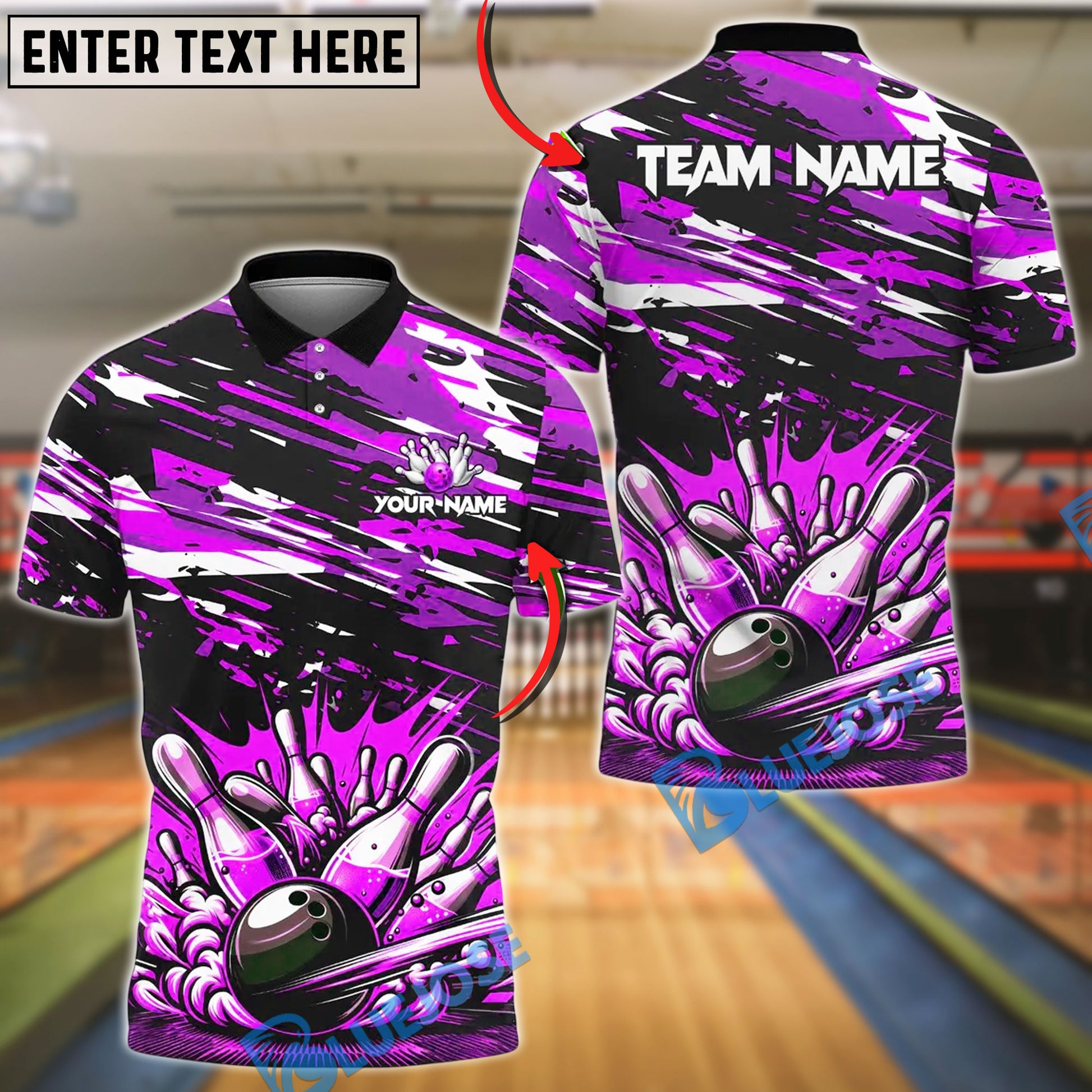 BlueJose Bowling And Pins Paint Impact Customized Name, Team Name 3D Shirt (4 Colors)