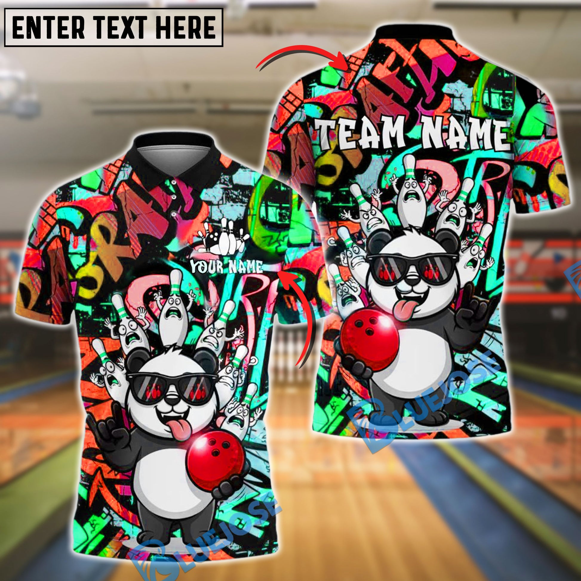 BlueJose Bowling And Pins Panda Cool Style Customized Name, Team Name 3D Shirt (4 Colors)