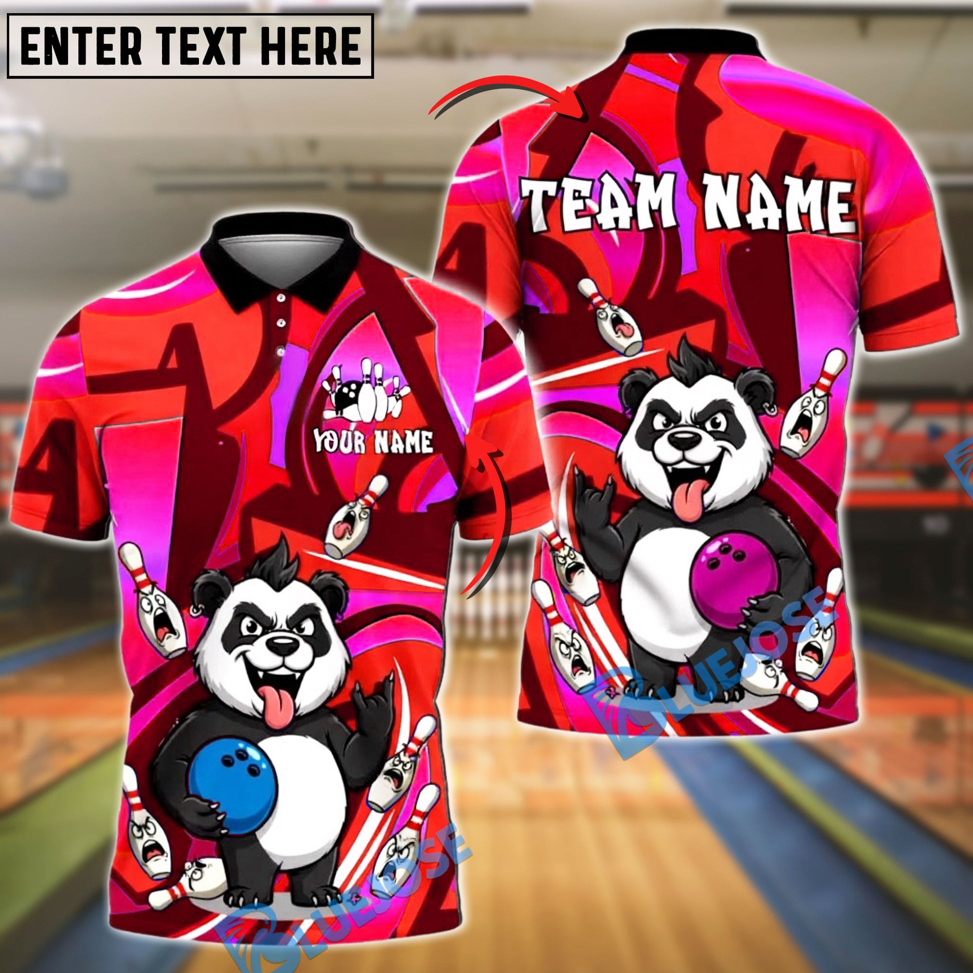 BlueJose Bowling And Pins Panda Cute Angry Graffiti Customized Name, Team Name 3D Shirt (4 Colors)