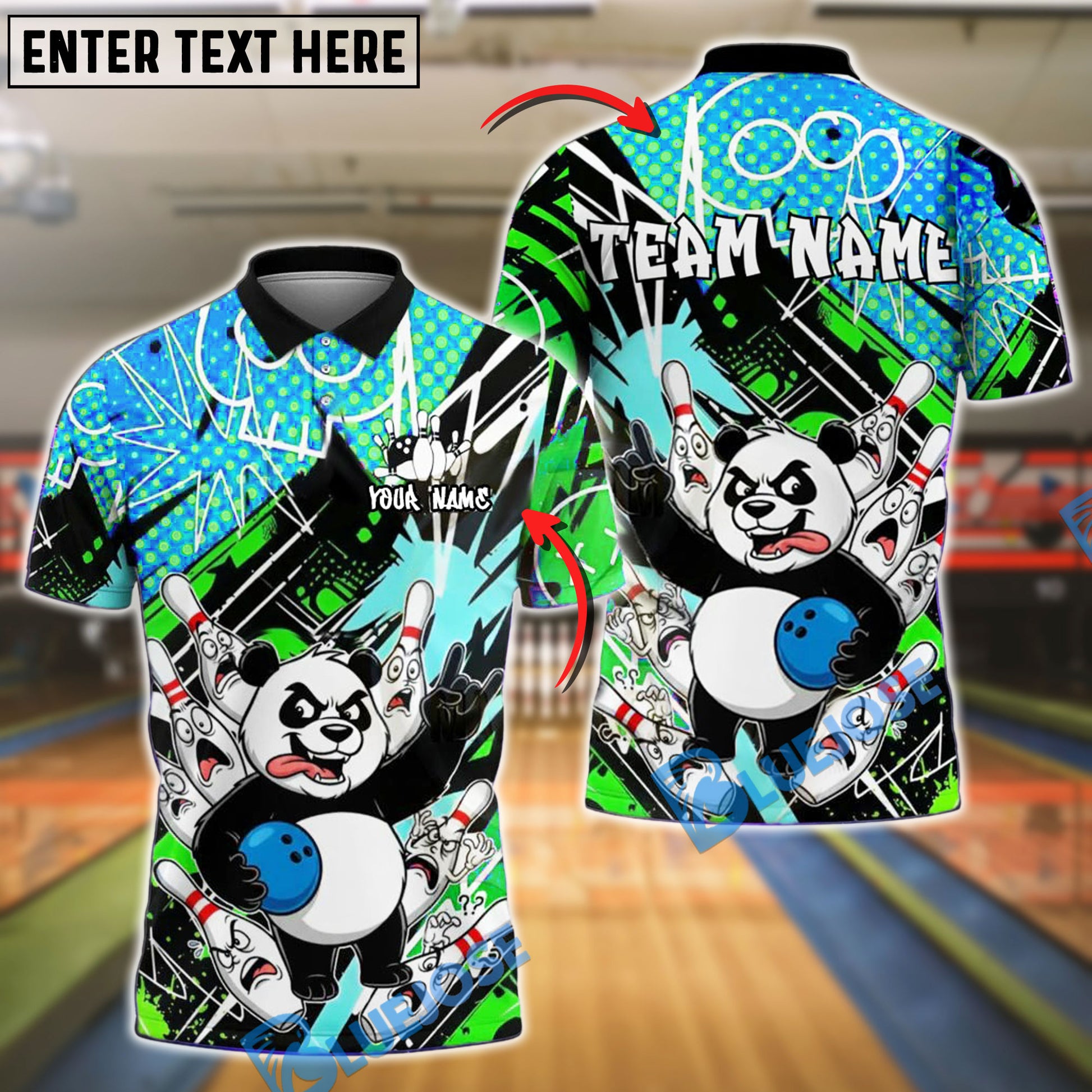 BlueJose Bowling And Pins Panda Wild Cartoon Art Customized Name, Team Name 3D Shirt (4 Colors)