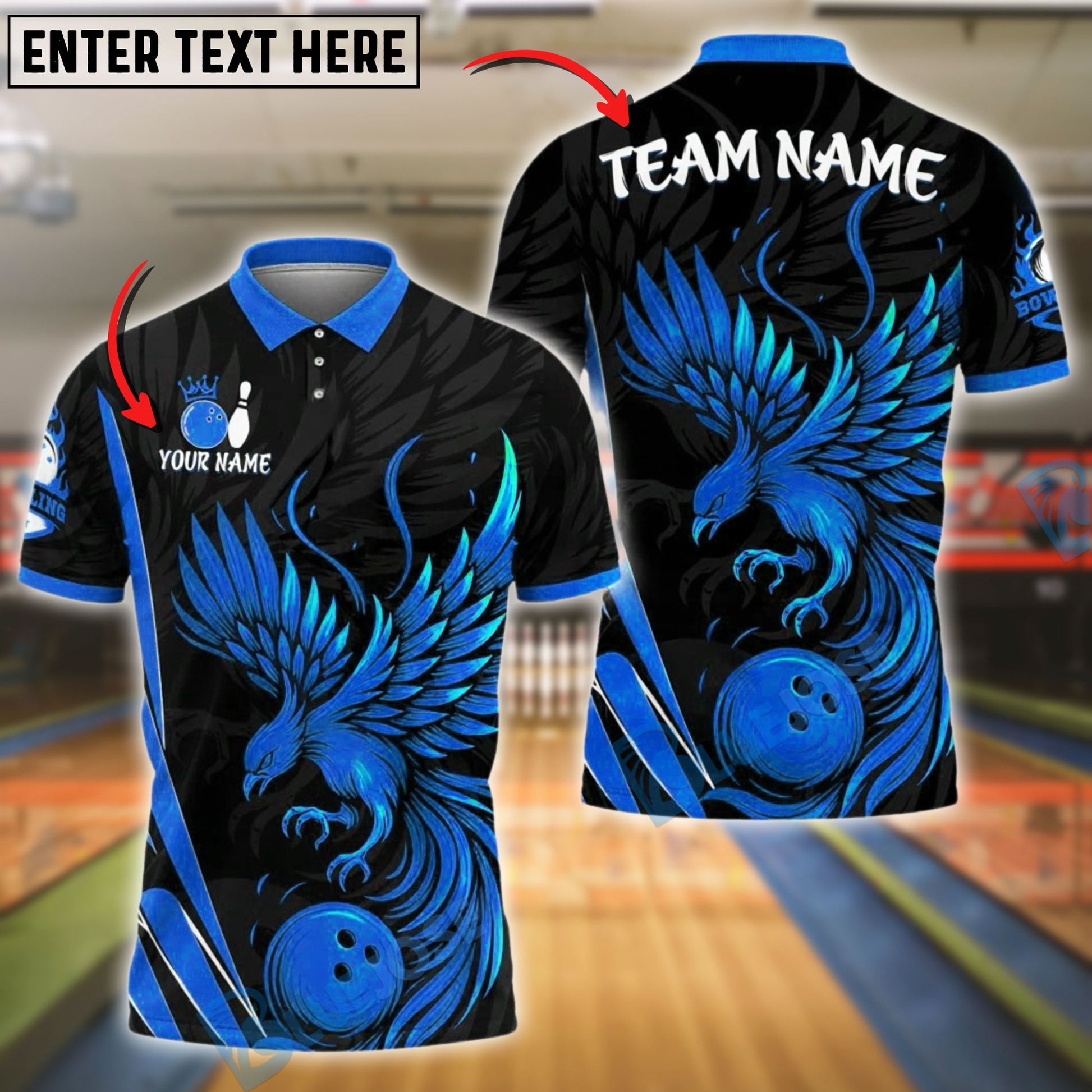 BlueJose Bowling And Pins Phoenix Flame Design Customized Name, Team Name 3D Shirt (4 Colors)