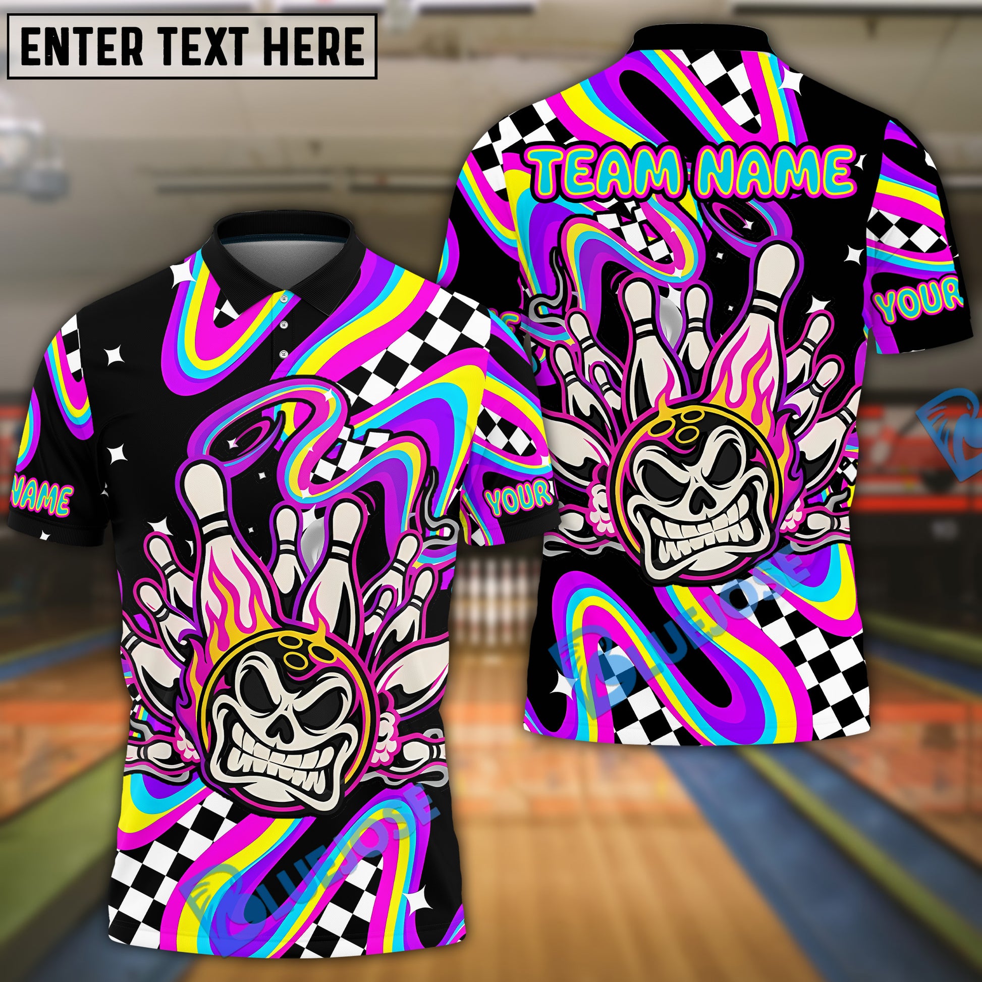BlueJose Bowling And Pins Psychedelic Skull Strike Customized Name, Team Name 3D Shirt