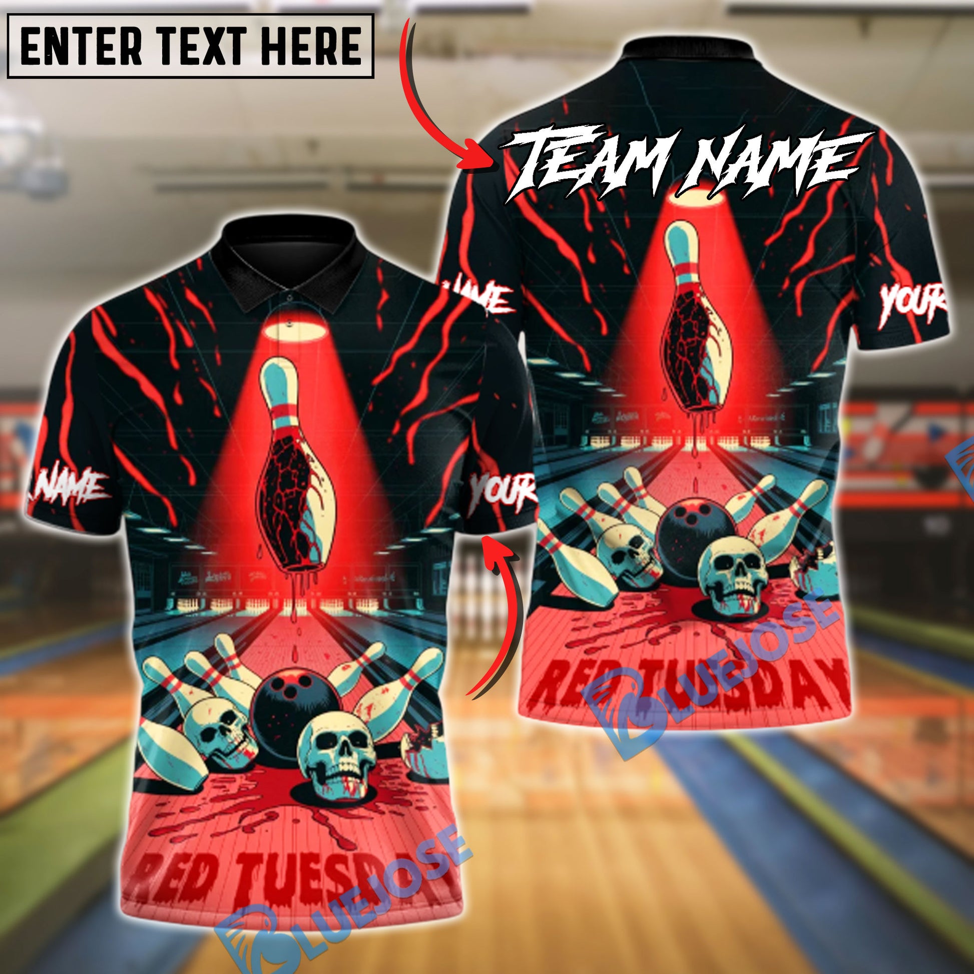 BlueJose Bowling And Pins Red Tuesday Horror Customized Name, Team Name 3D Shirt (4 Colors)