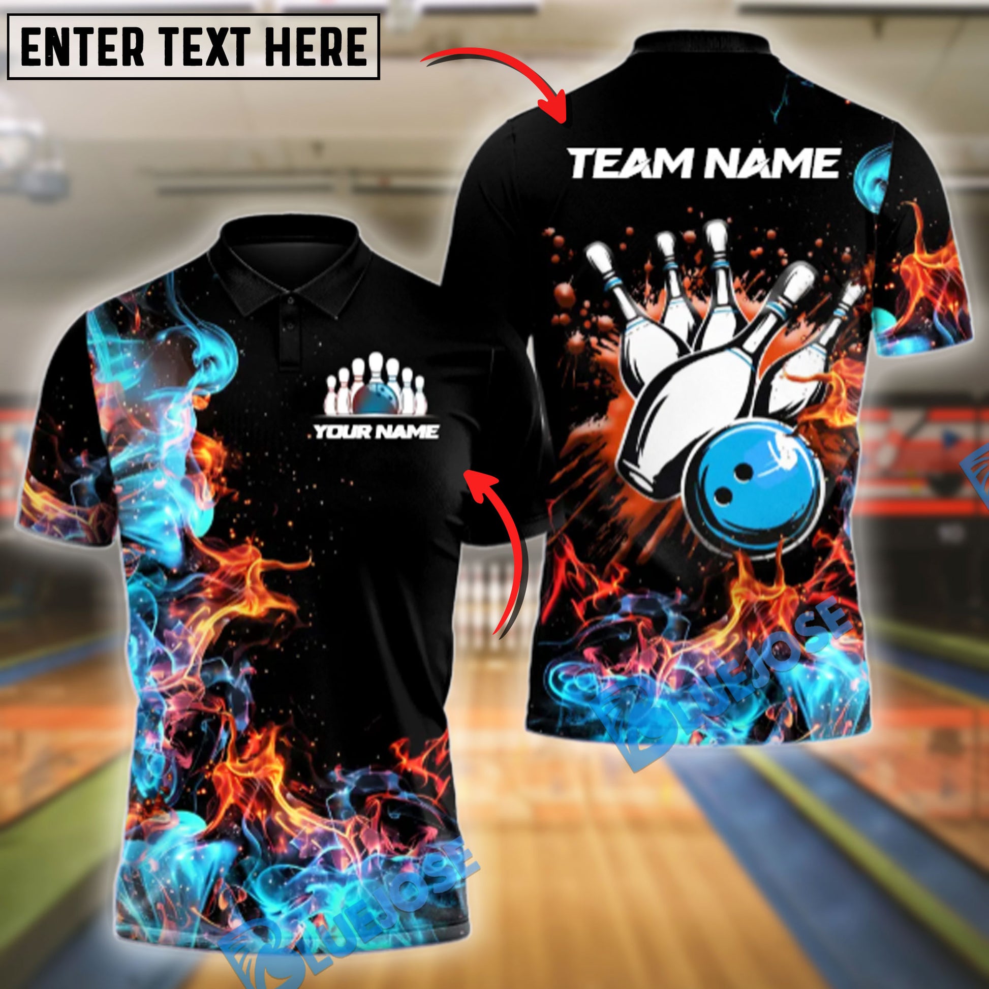 BlueJose Bowling And Pins Retro Smoke Customized Name, Team Name 3D Shirt (4 Colors)
