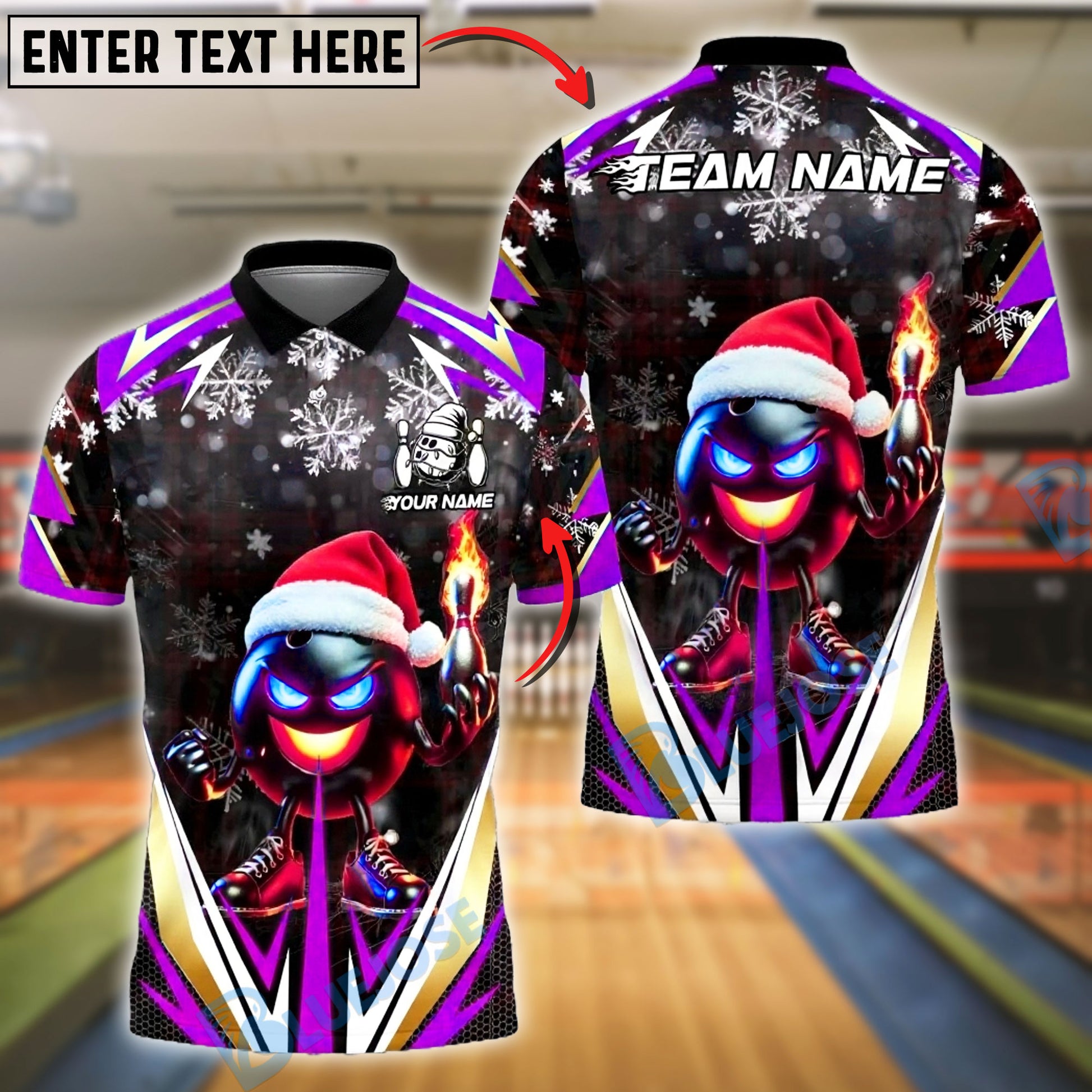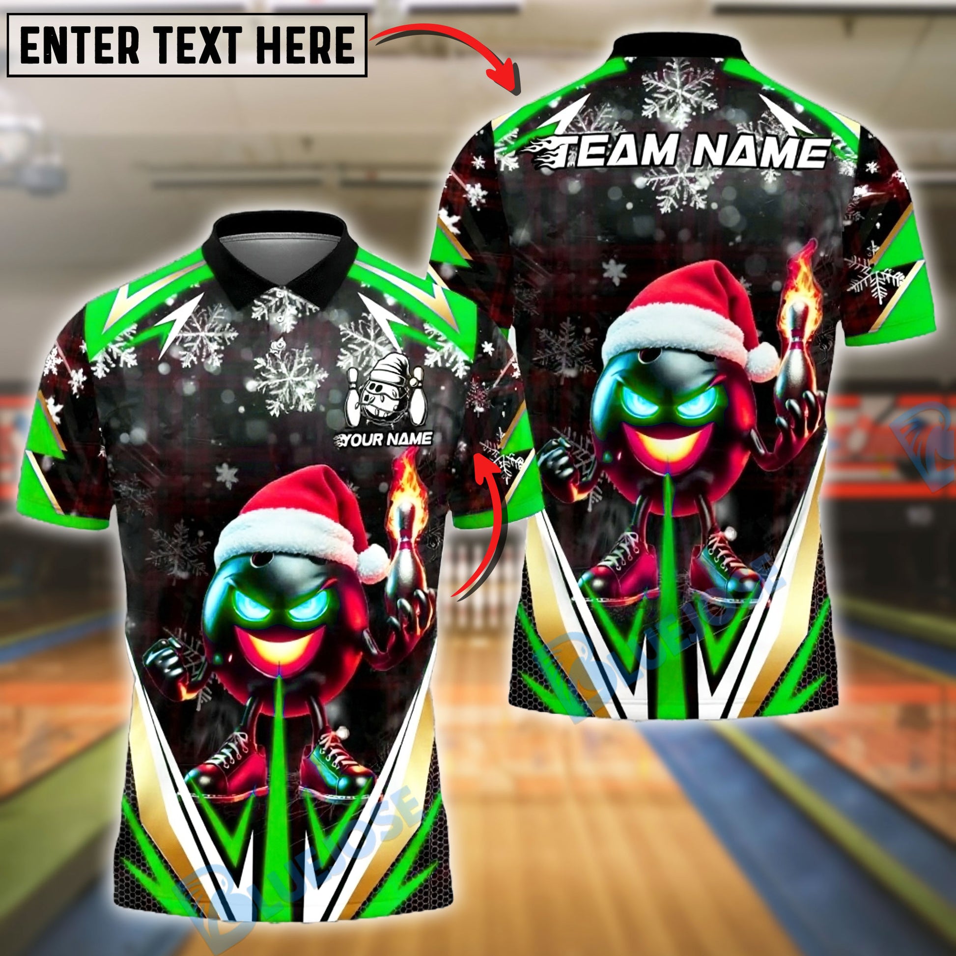 BlueJose Bowling And Pins Santa Fire Strike Customized Name, Team Name 3D Shirt (4 Colors)