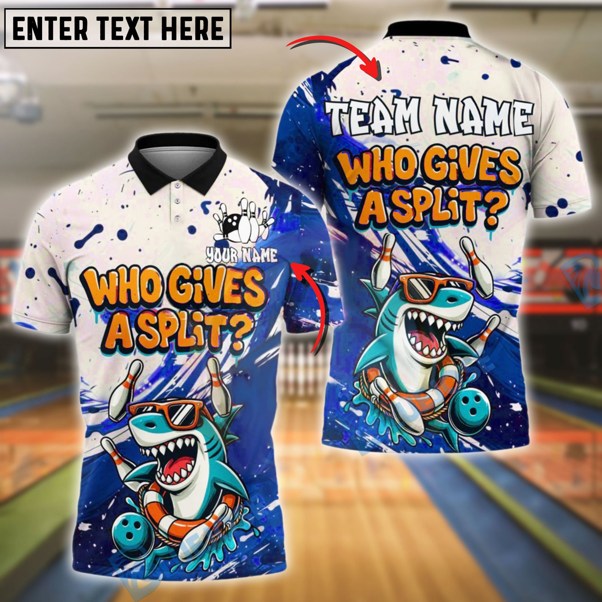 BlueJose Bowling And Pins Shark Cartoon Paint Design Customized Name, Team Name 3D Shirt (4 Colors)