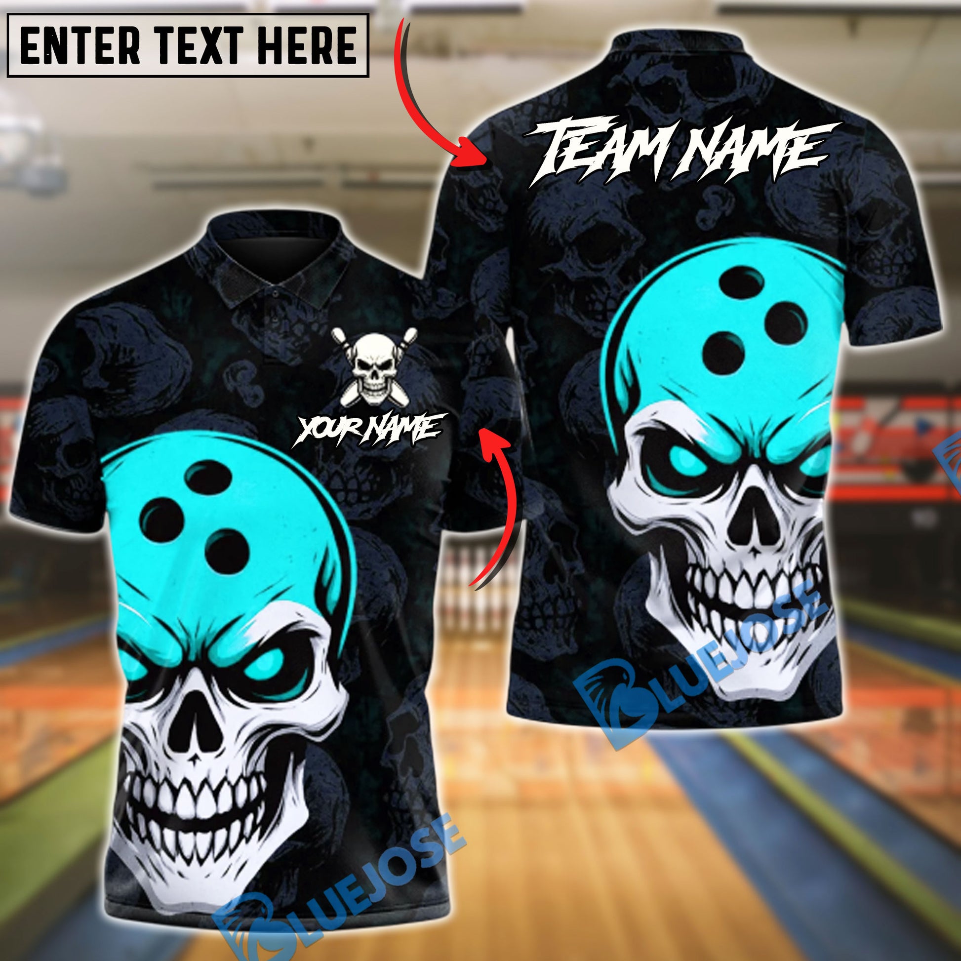 BlueJose Bowling And Pins Skull Head Customized Name, Team Name 3D Shirt (4 Colors)