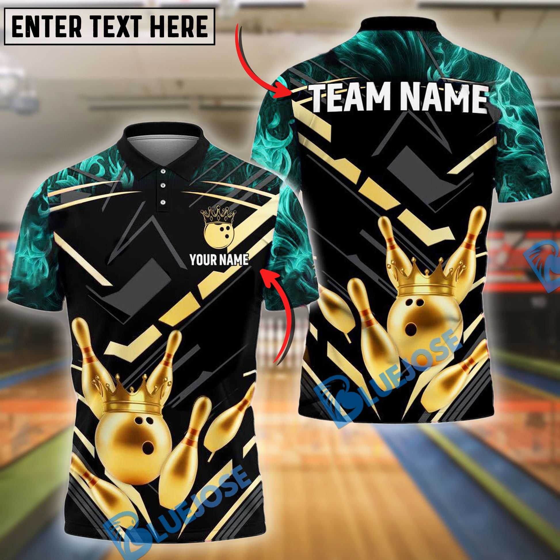 BlueJose Bowling And Pins Smoke Premium Gold Pattern Customized Name, Team Name 3D Shirt (4 Colors)