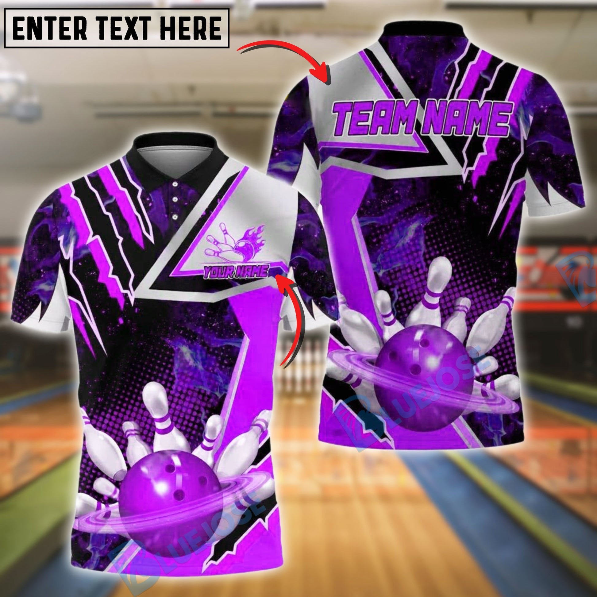 BlueJose Bowling And Pins Space Galaxy Explosion Customized Name, Team Name 3D Shirt (4 Colors)