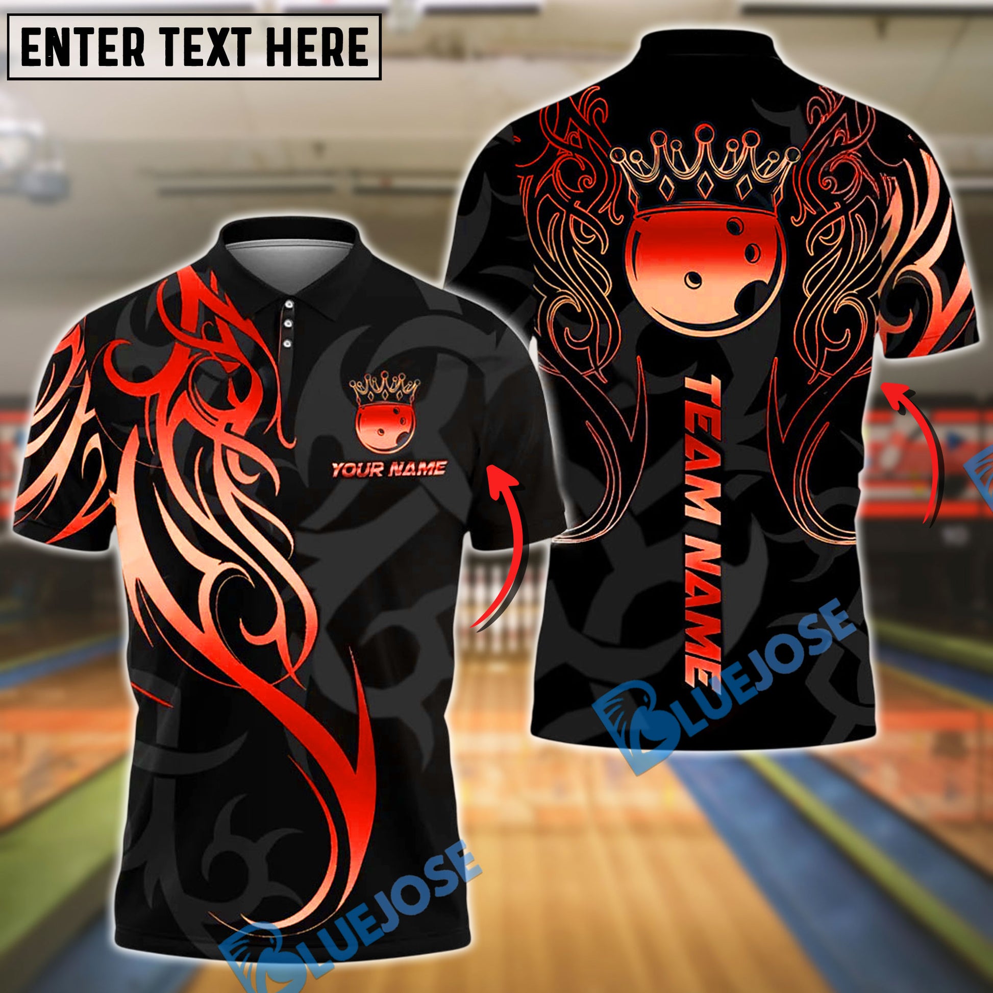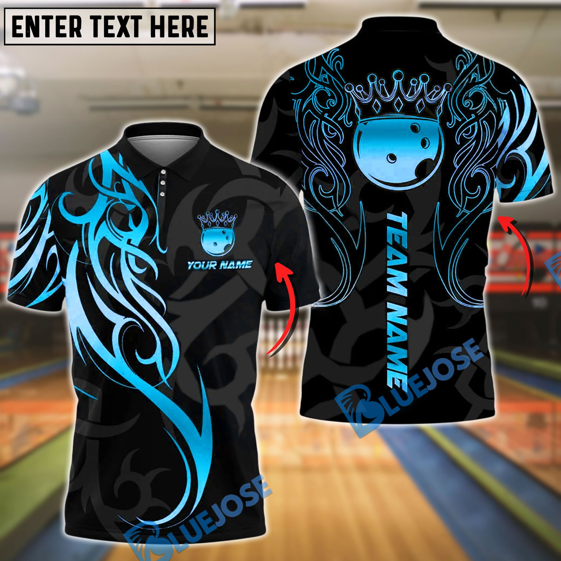 BlueJose Bowling And Pins Sport Crown Ball Flame Customized Name, Team Name 3D Shirt (4 Colors)