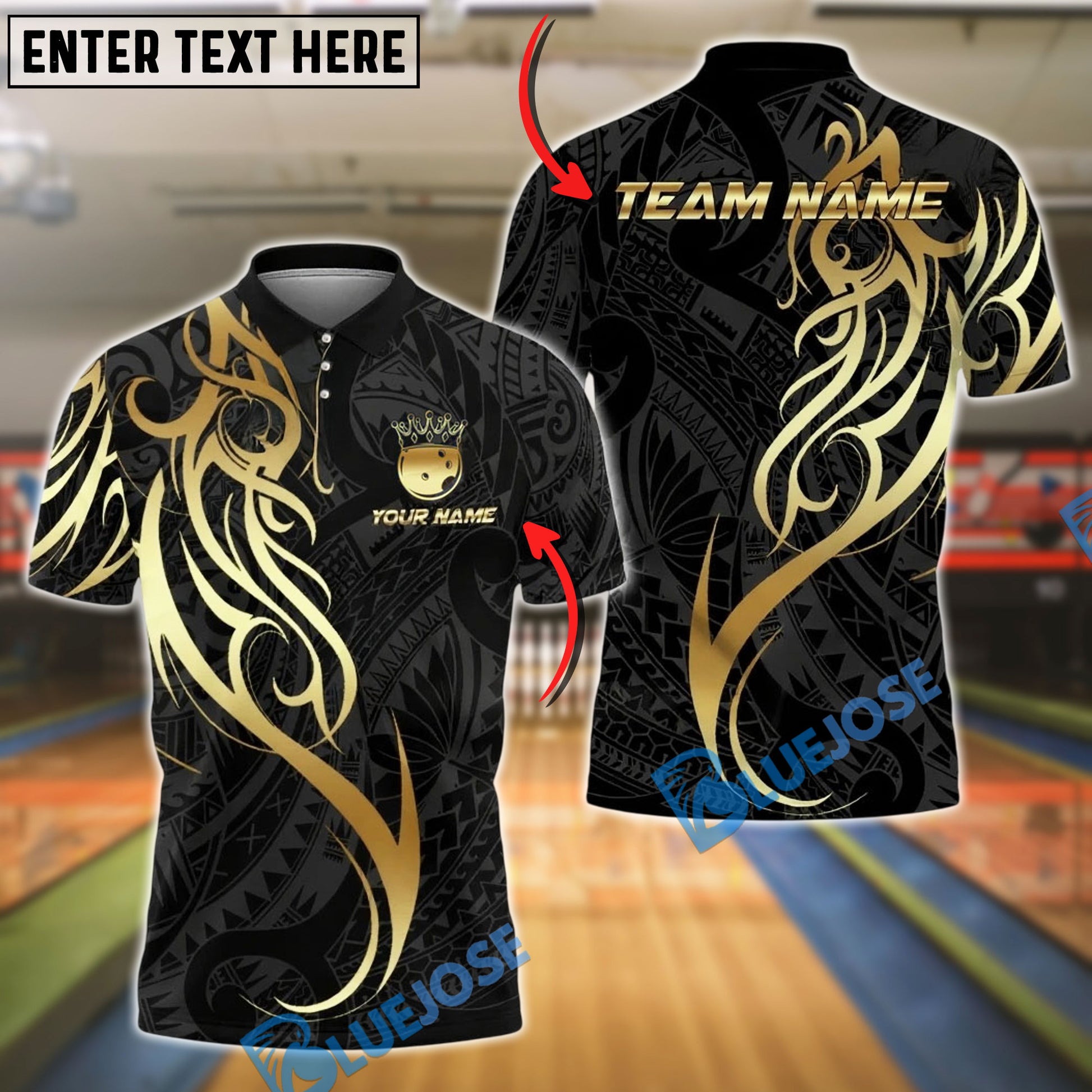 BlueJose Bowling And Pins Sport Golden Tribal Crown Customized Name, Team Name 3D Shirt (4 Colors)