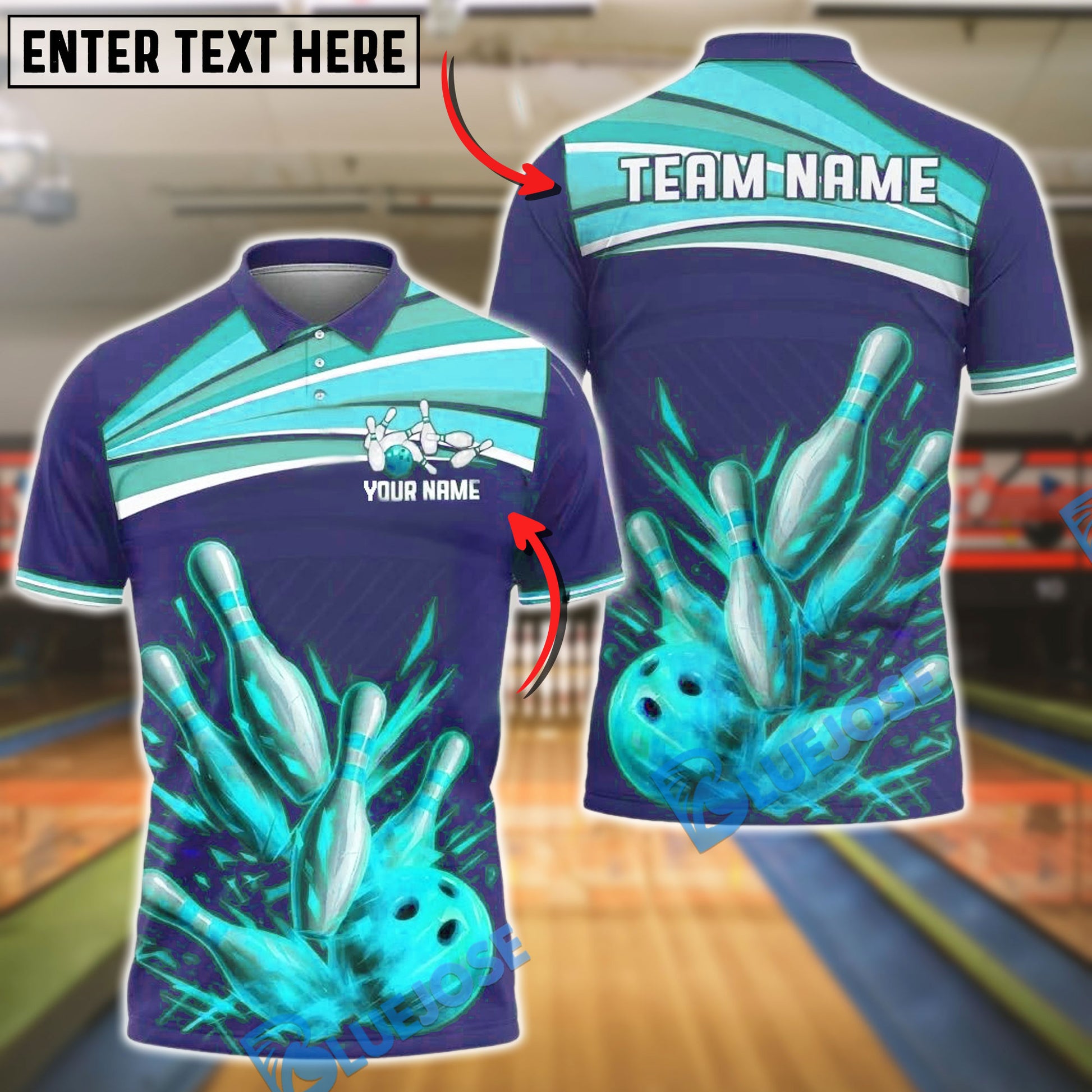 BlueJose Bowling And Pins Strike Explosion Customized Name, Team Name 3D Shirt (4 Colors)