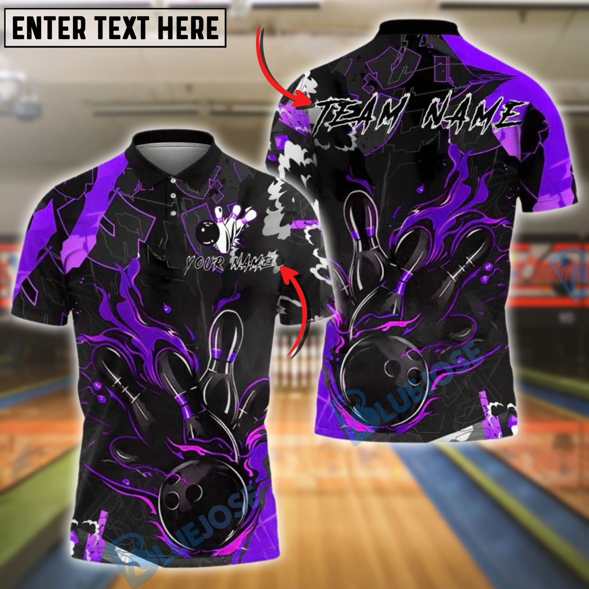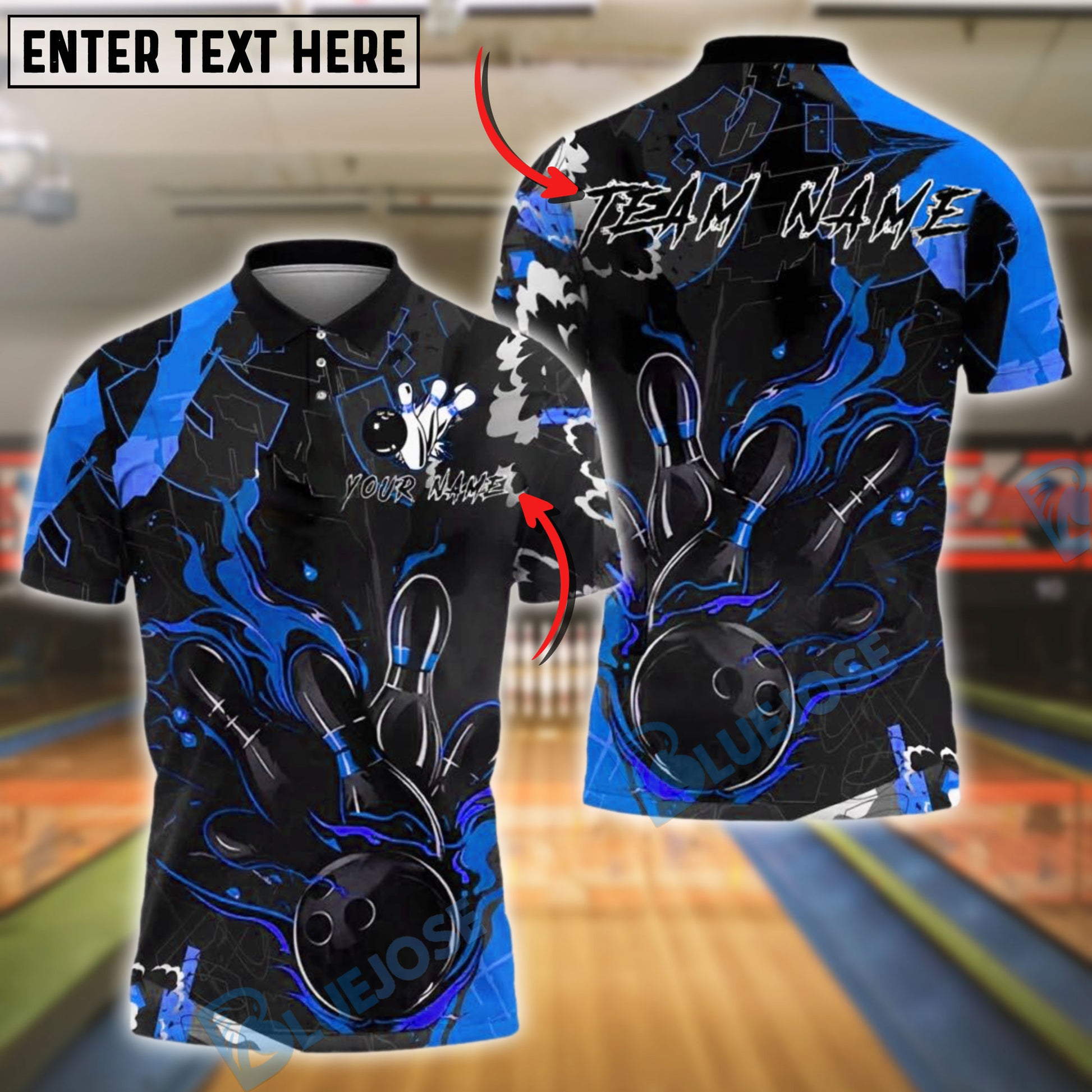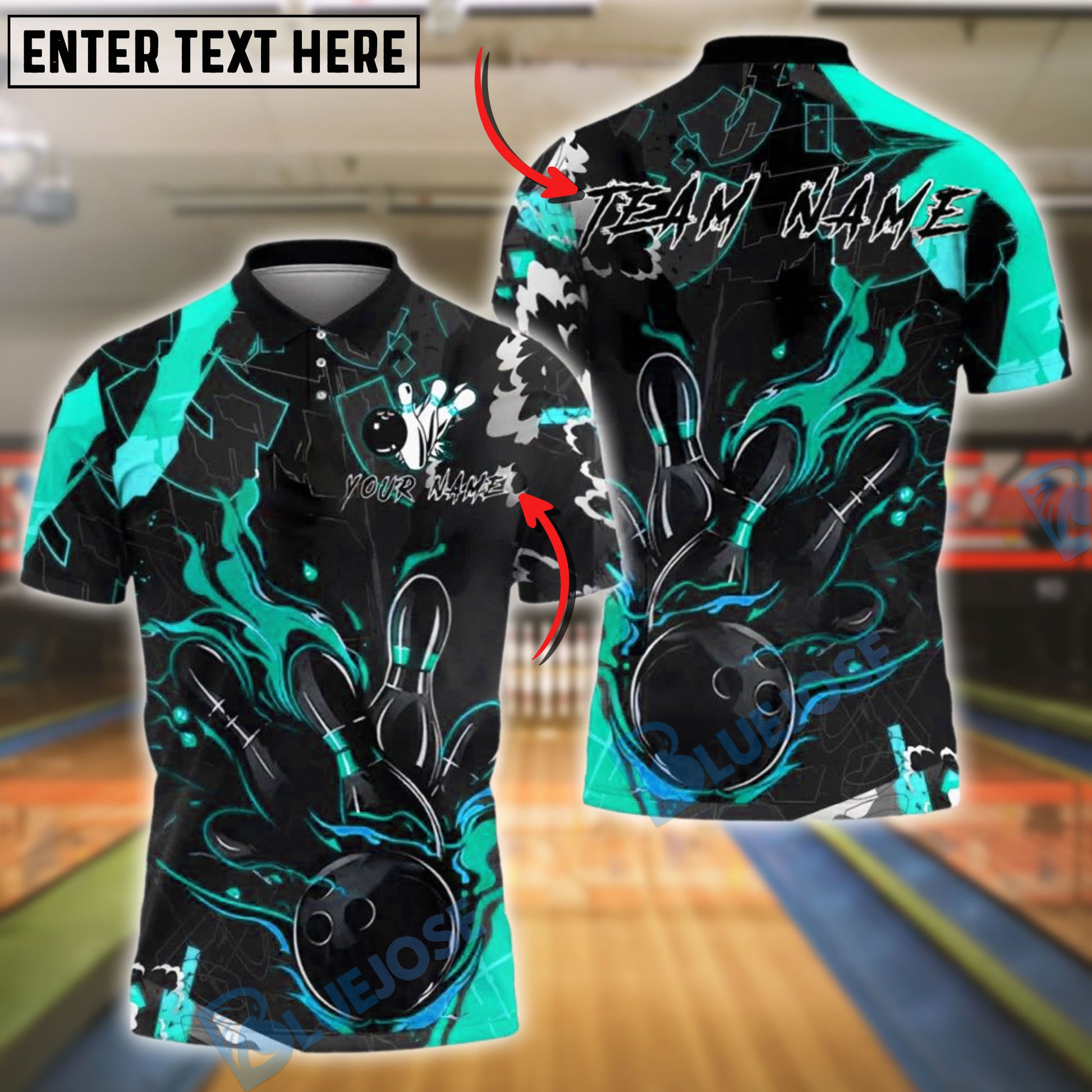 BlueJose Bowling And Pins Strike Flaming Ball Pins Customized Name, Team Name 3D Shirt (4 Colors)