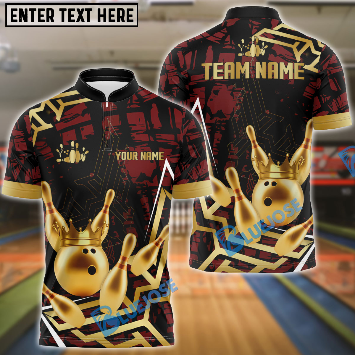 BlueJose Bowling And Pins Strike Warrior Golden Pattern Customized Name 3D Shirt (4 Colors)