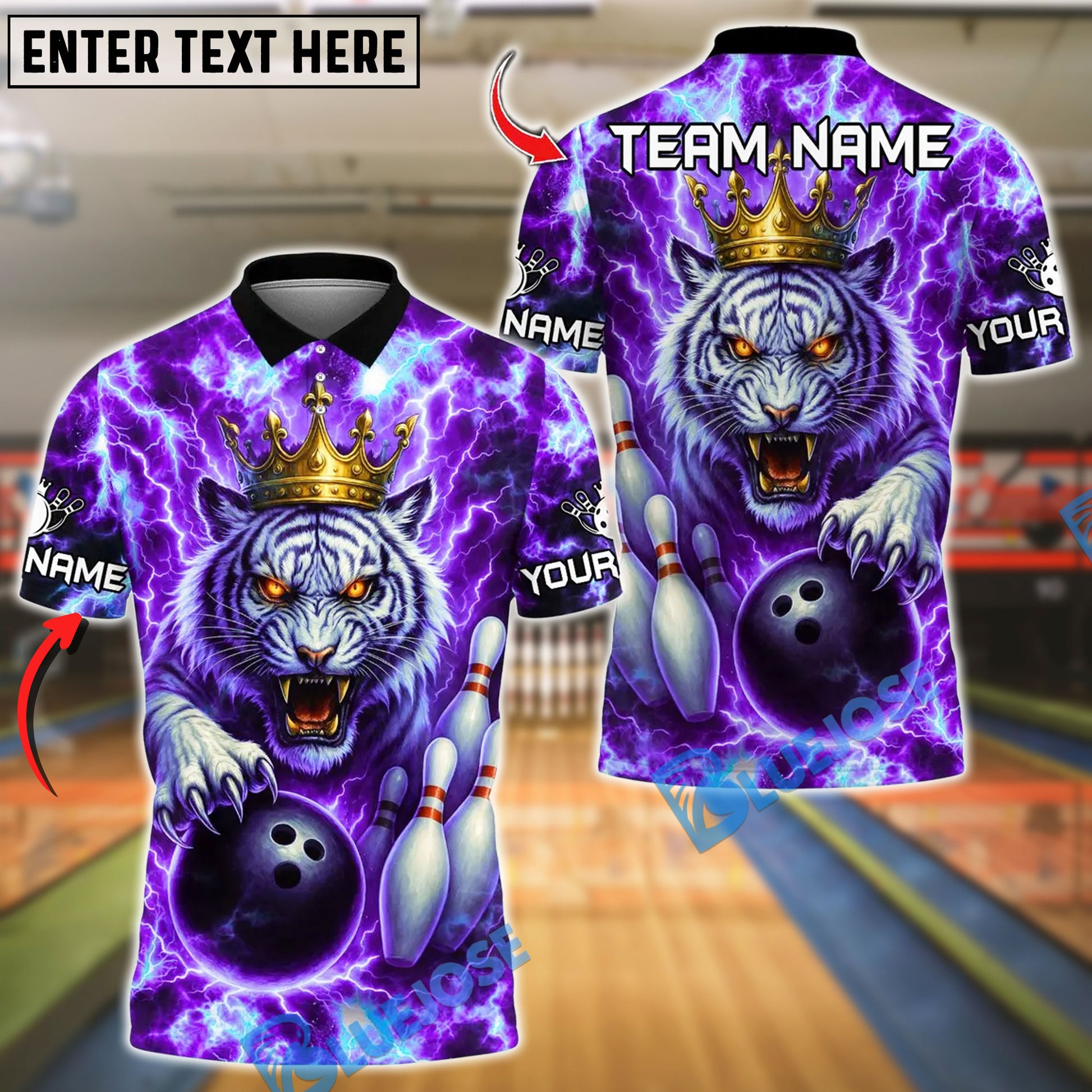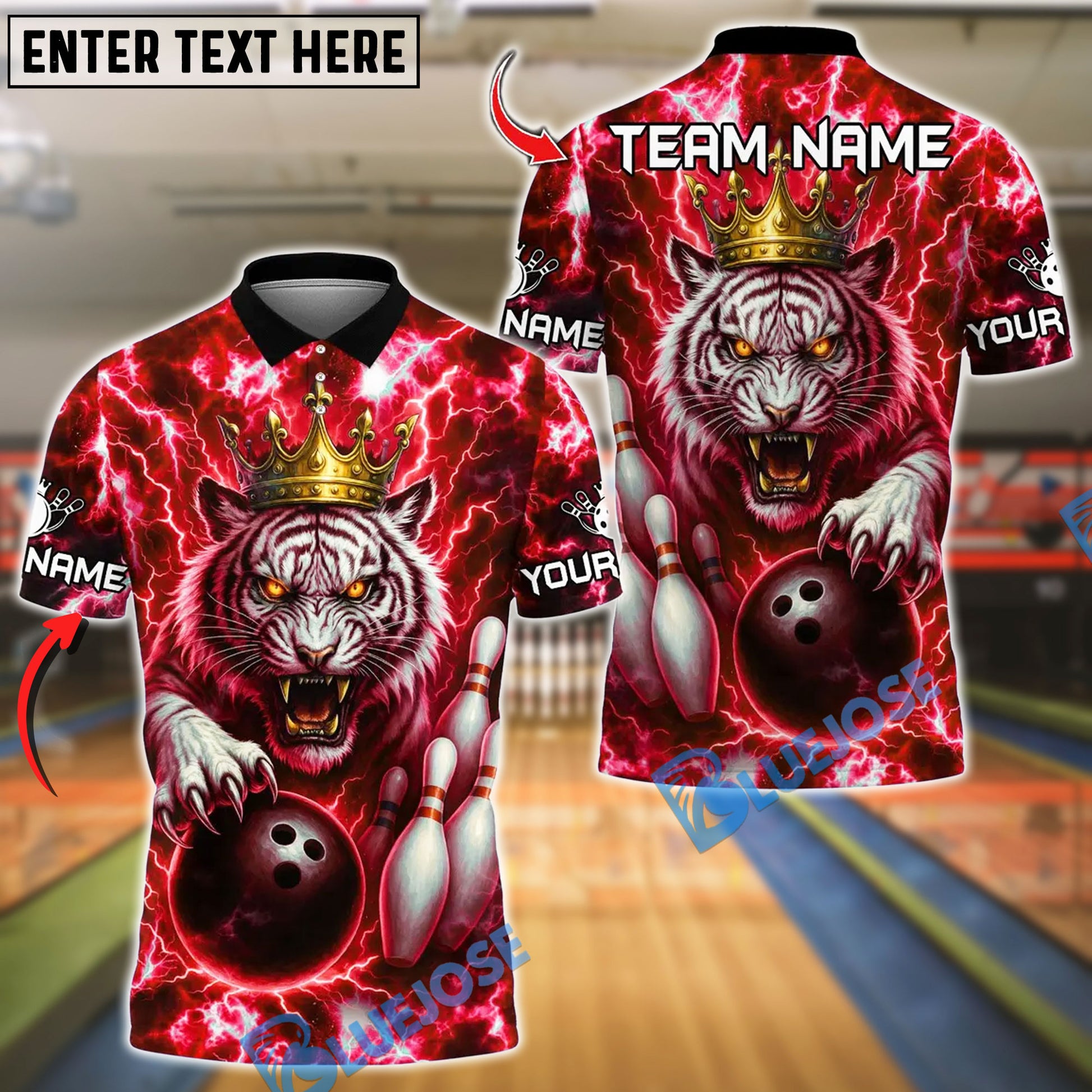 BlueJose Bowling And Pins Thunder Lightning Tiger King Customized Name, Team Name 3D Shirt (4 Colors)