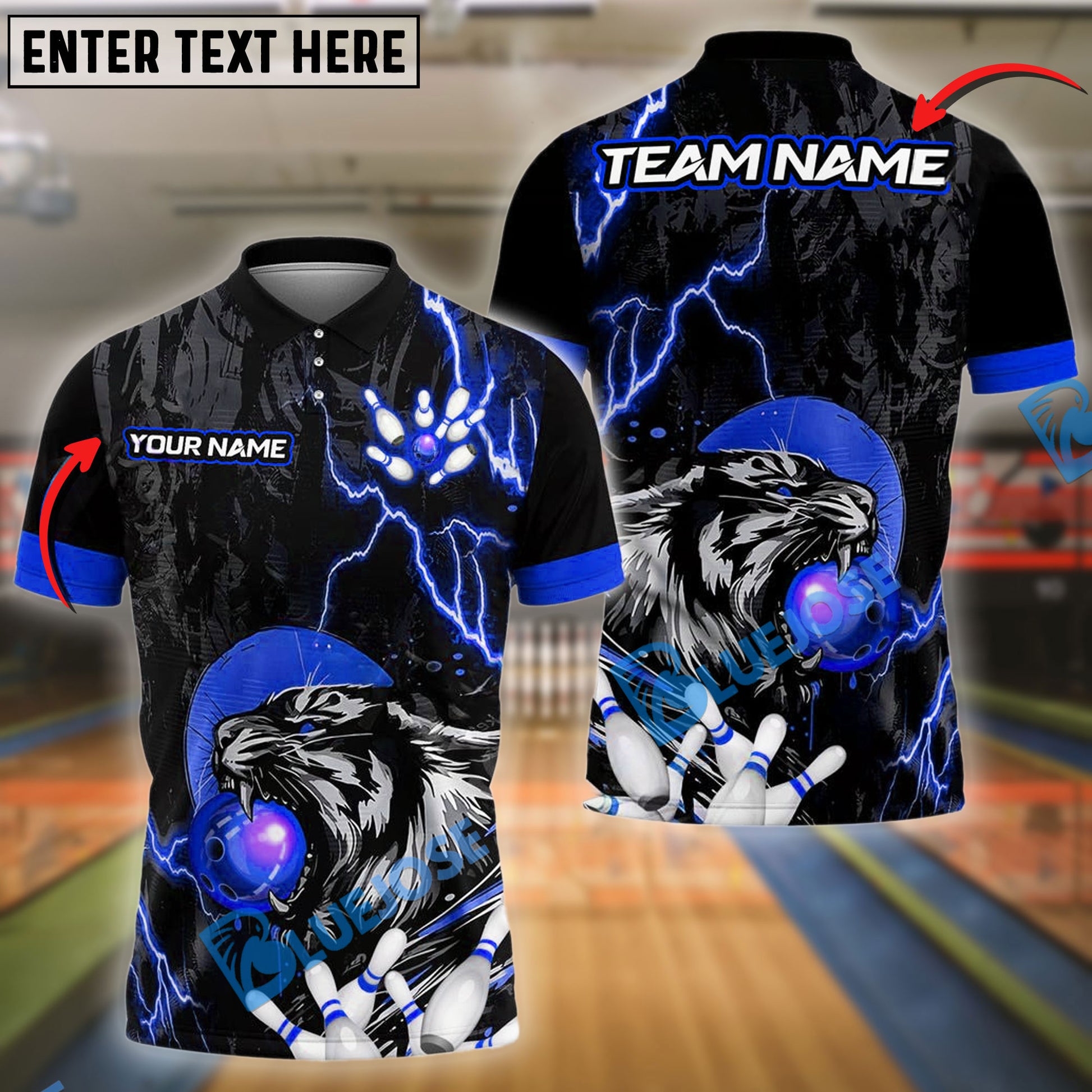 BlueJose Bowling And Pins Thunder Tiger Multicolor Options Personalized Name, Team Name 3D Shirt (4 Colors)