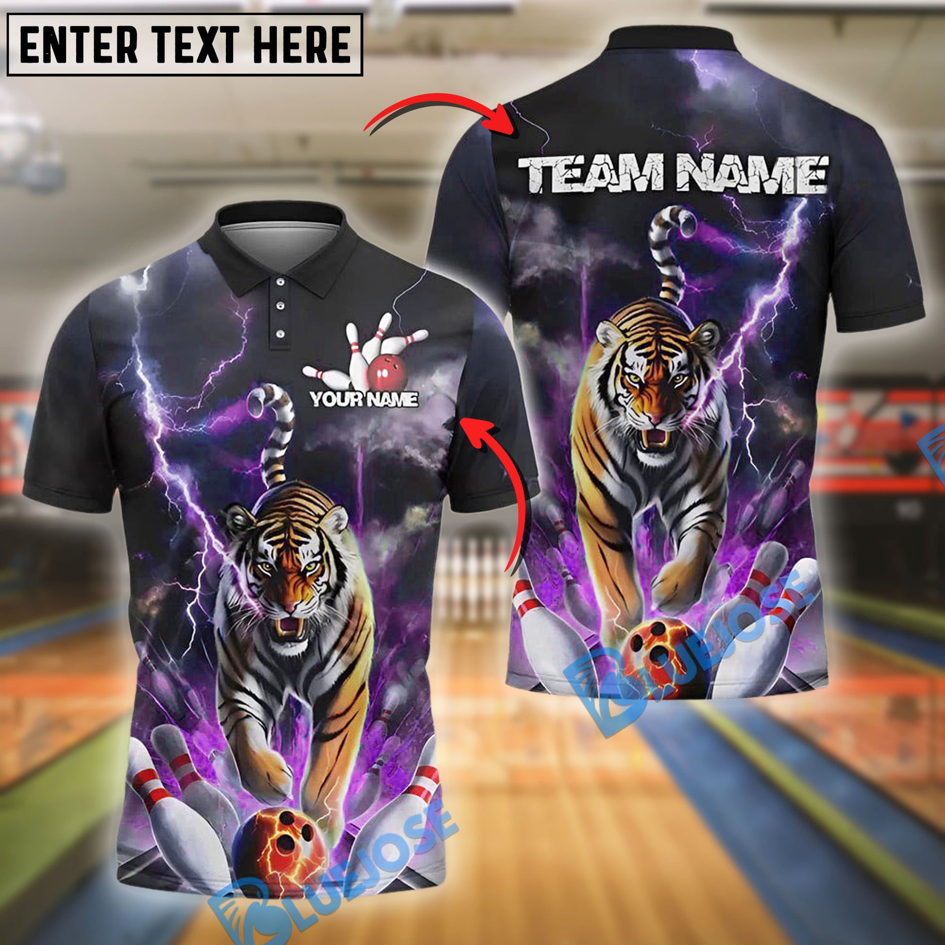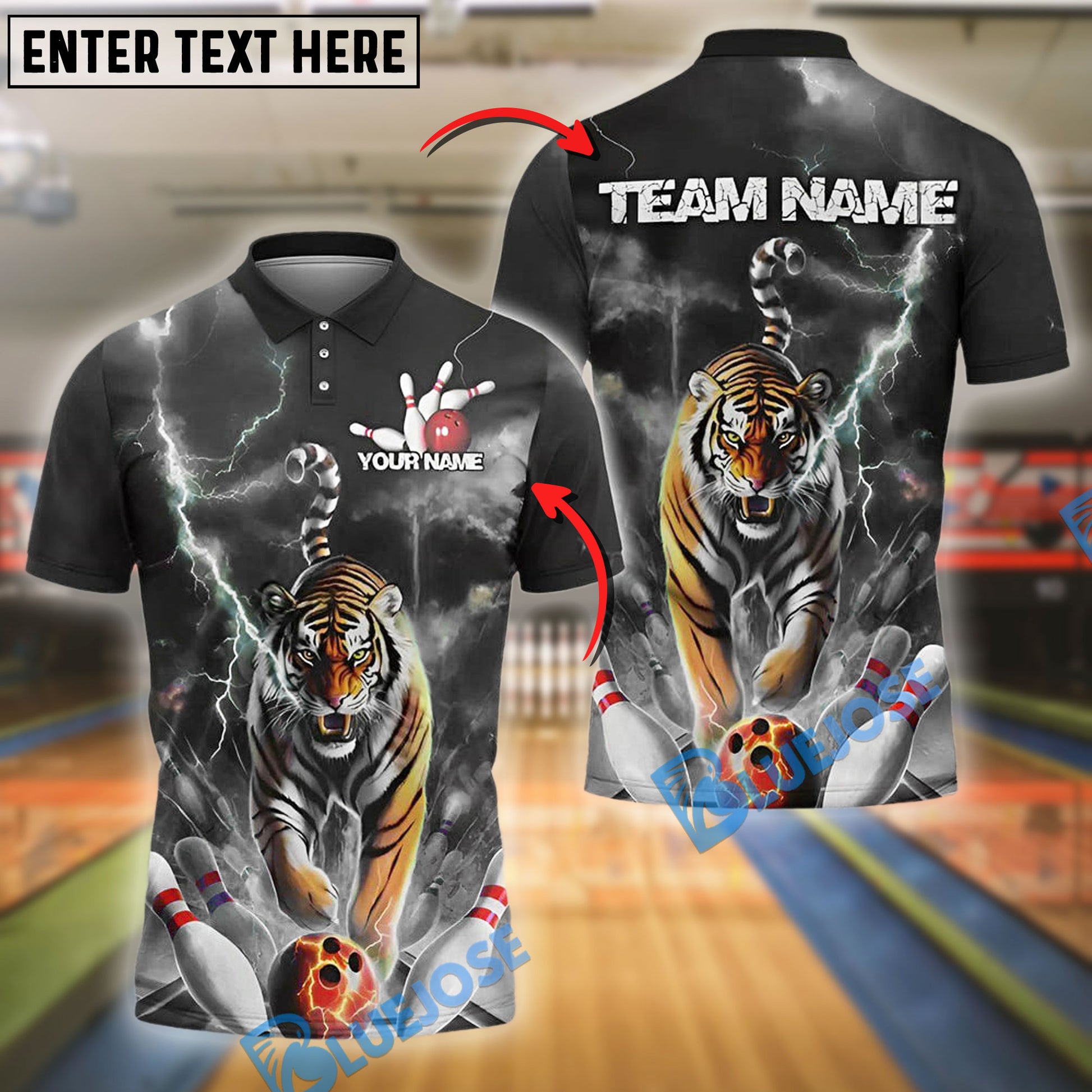 BlueJose Bowling And Pins Thunder Tiger Strike Style Customized Name, Team Name 3D Shirt (4 Colors)