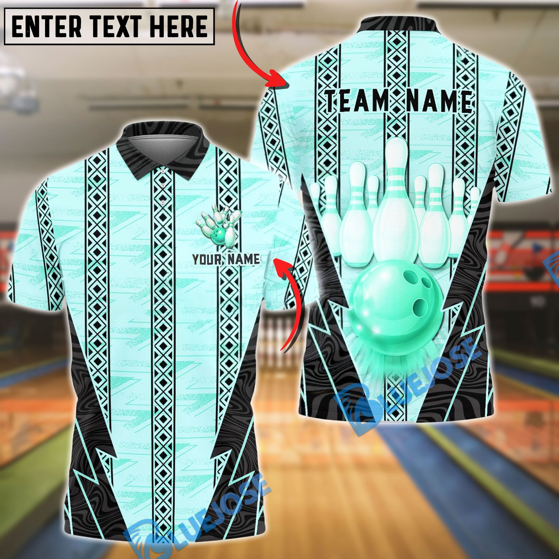 BlueJose Bowling And Pins Tribal Glossy Graphic Customized Name, Team Name 3D Shirt (4 Colors)