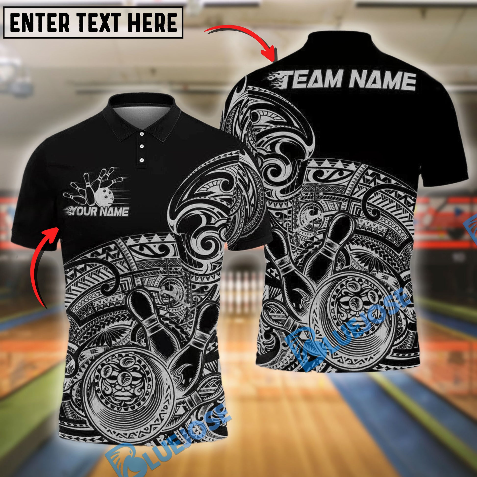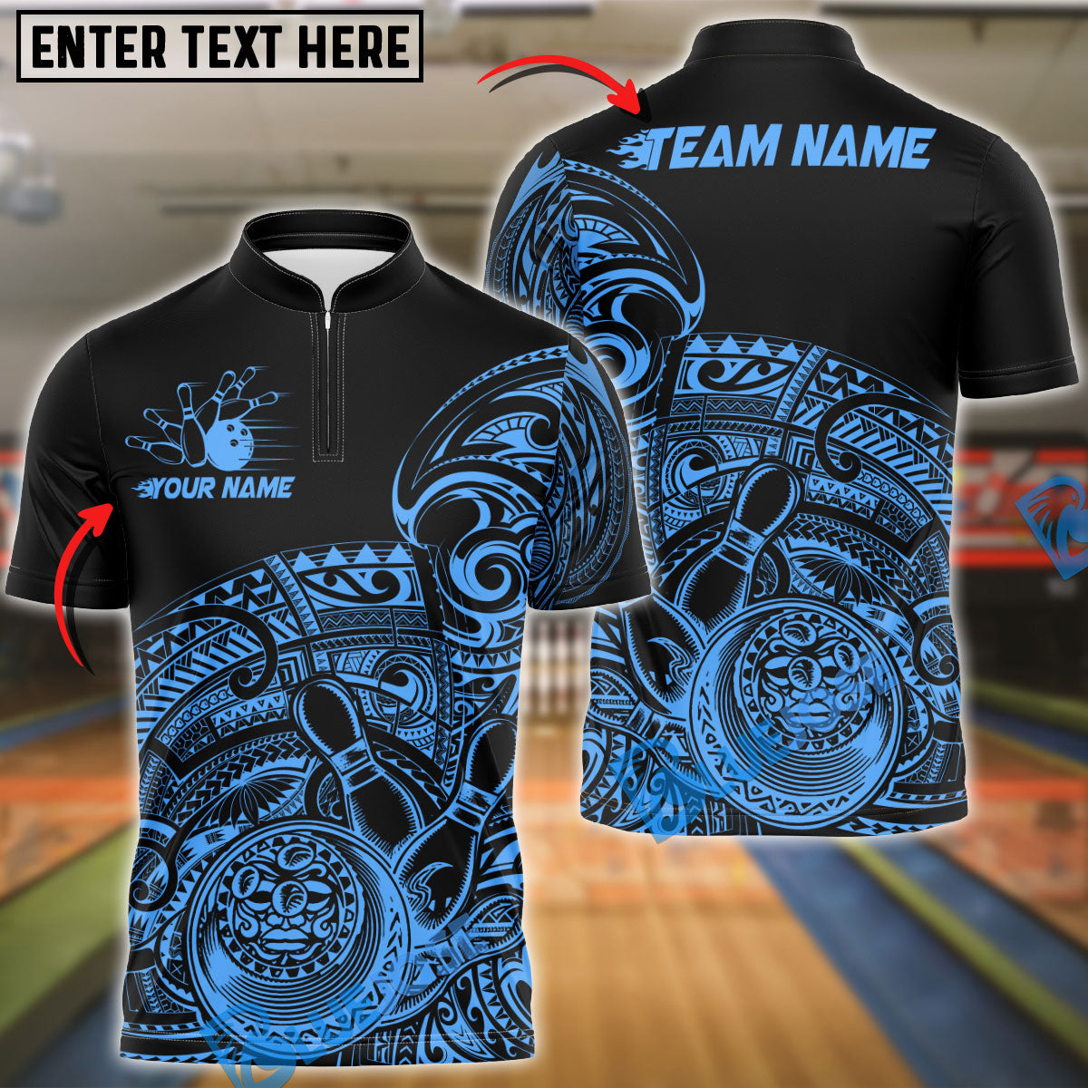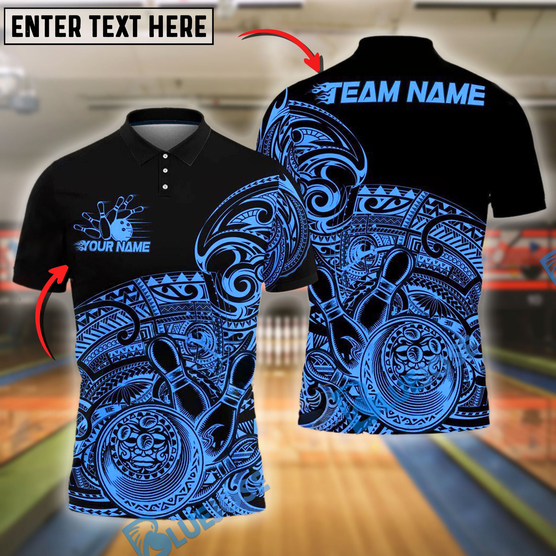 BlueJose Bowling And Pins Tribal Strike Customized Name, Team Name 3D Shirt (4 Colors)