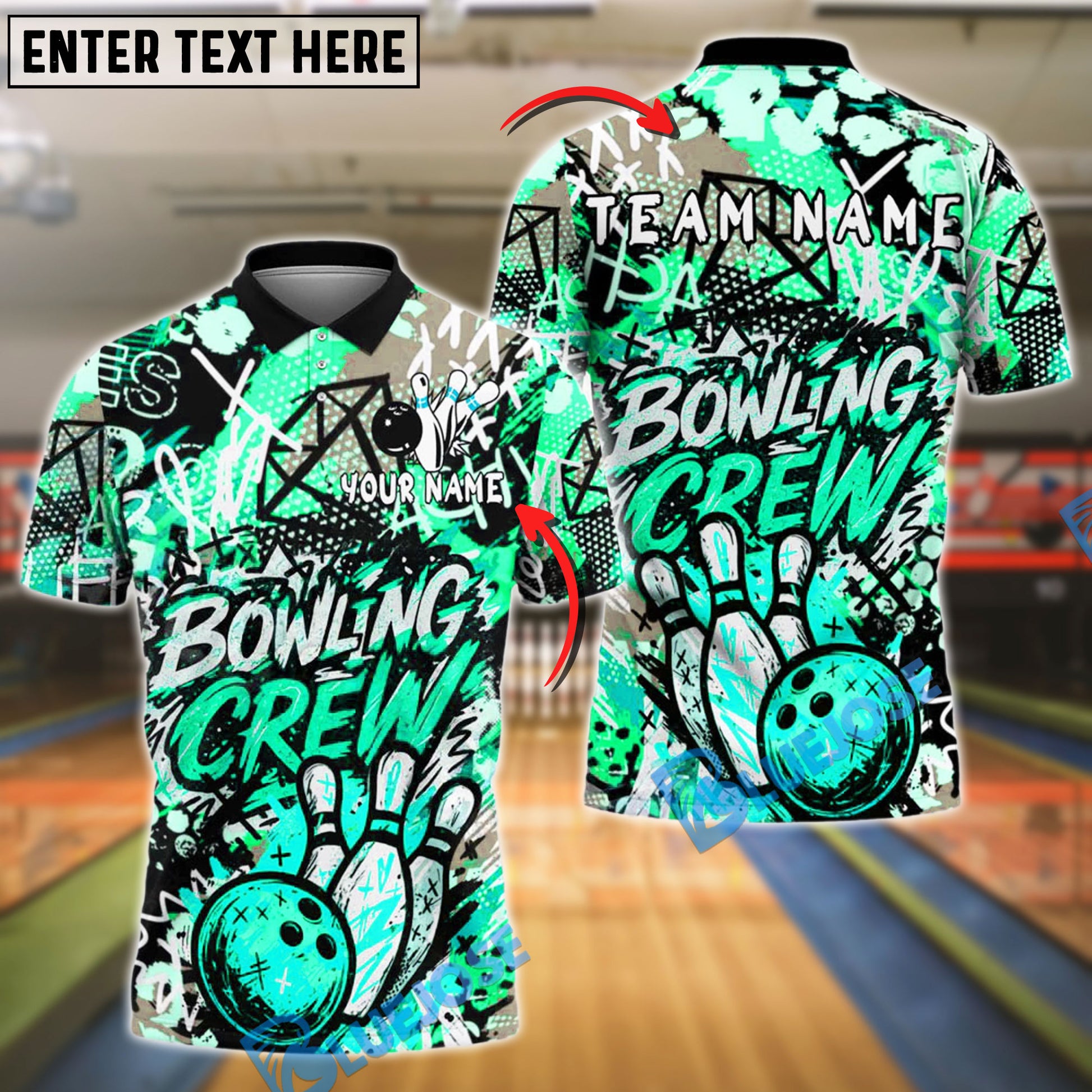 BlueJose Bowling And Pins Urban Scribble Customized Name, Team Name 3D Shirt (4 Colors)