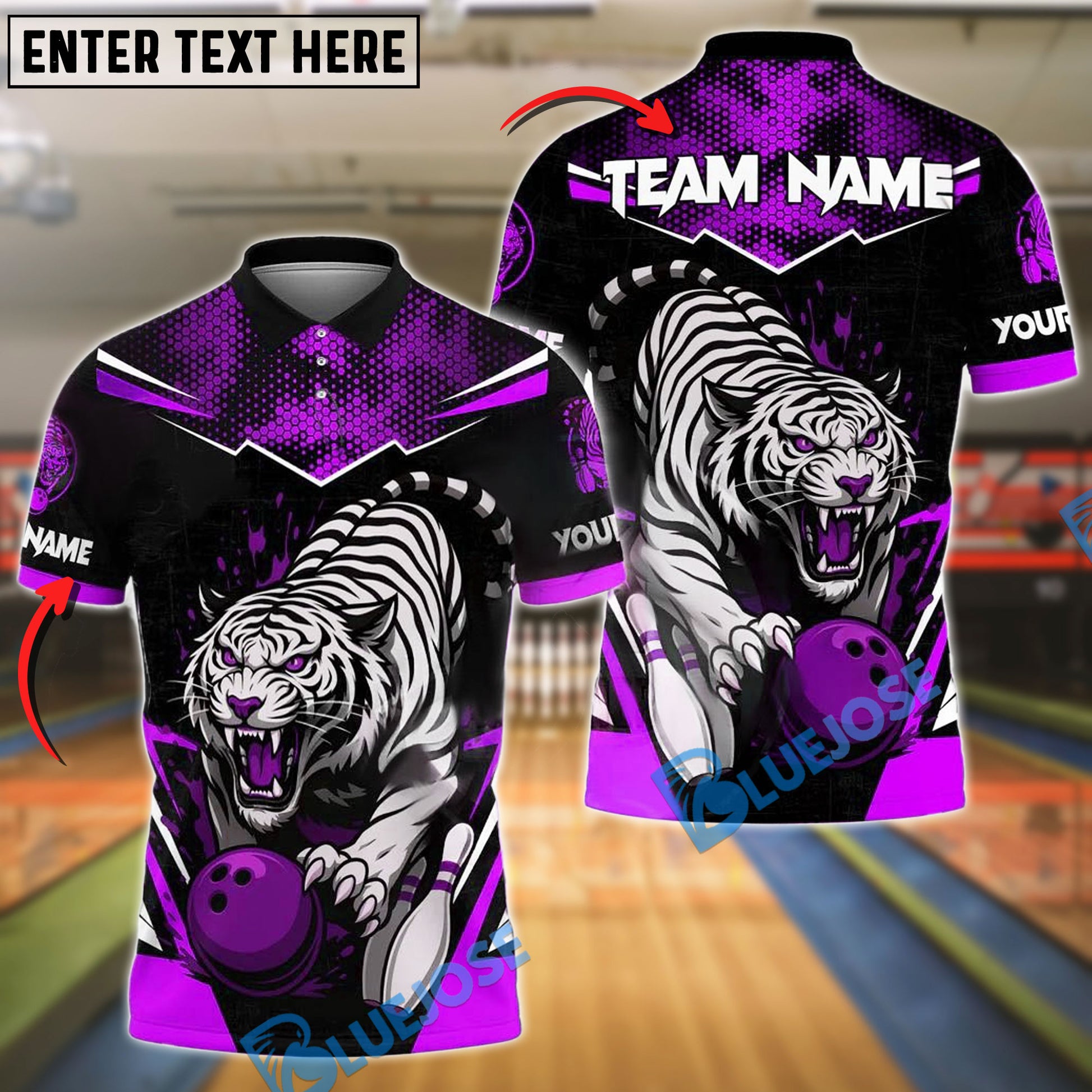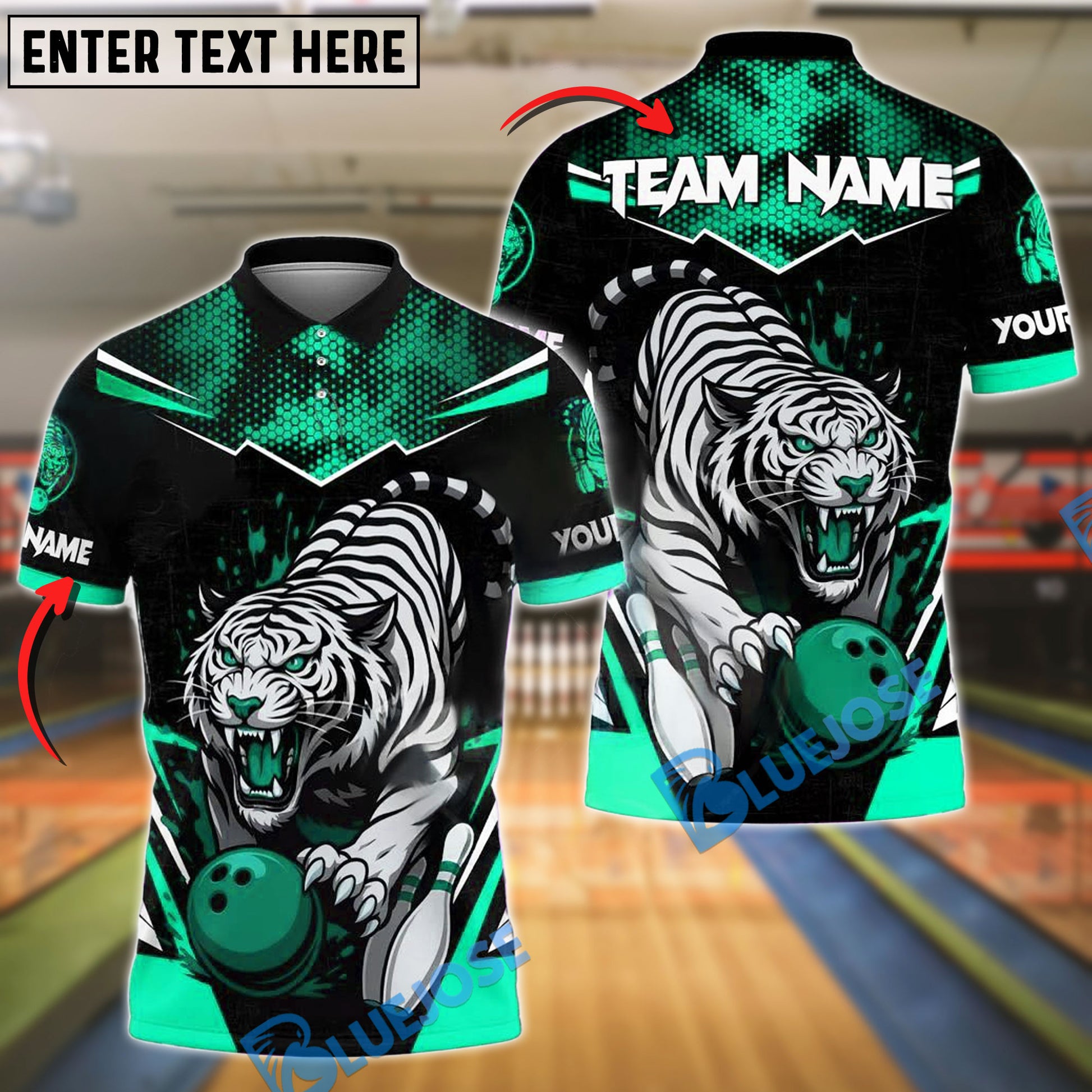 BlueJose Bowling And Pins White Tiger Fury Customized Name, Team Name 3D Shirt (4 Colors)
