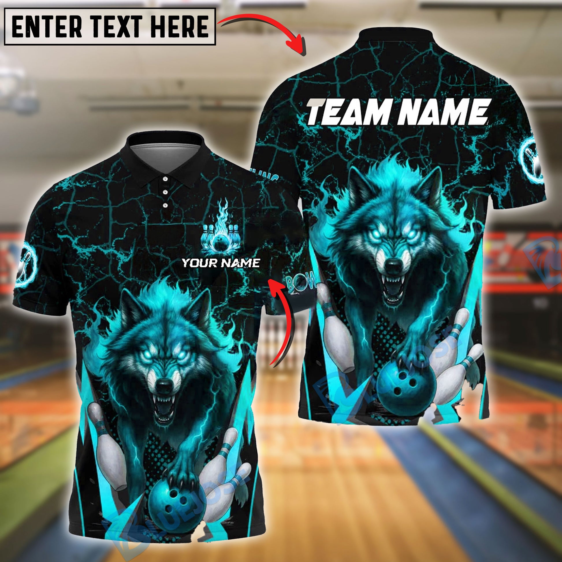 BlueJose Bowling And Pins Wolf Flame Customized Name, Team Name 3D Shirt (4 Colors)