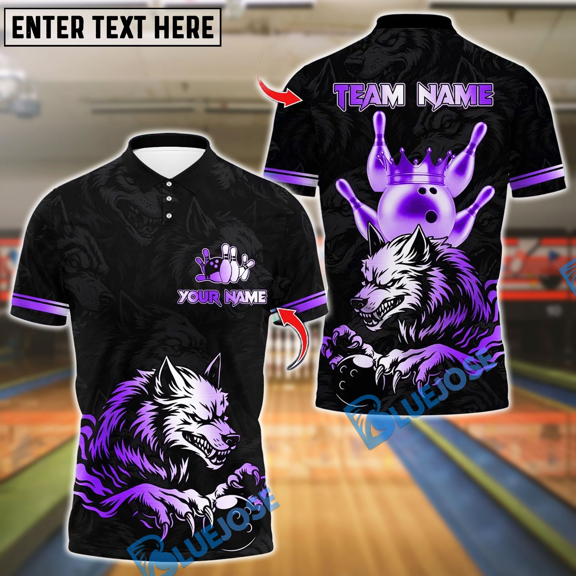 BlueJose Bowling And Pins Wolf Strike Gold Fury Customized Name, Team Name 3D Shirt (4 Colors)
