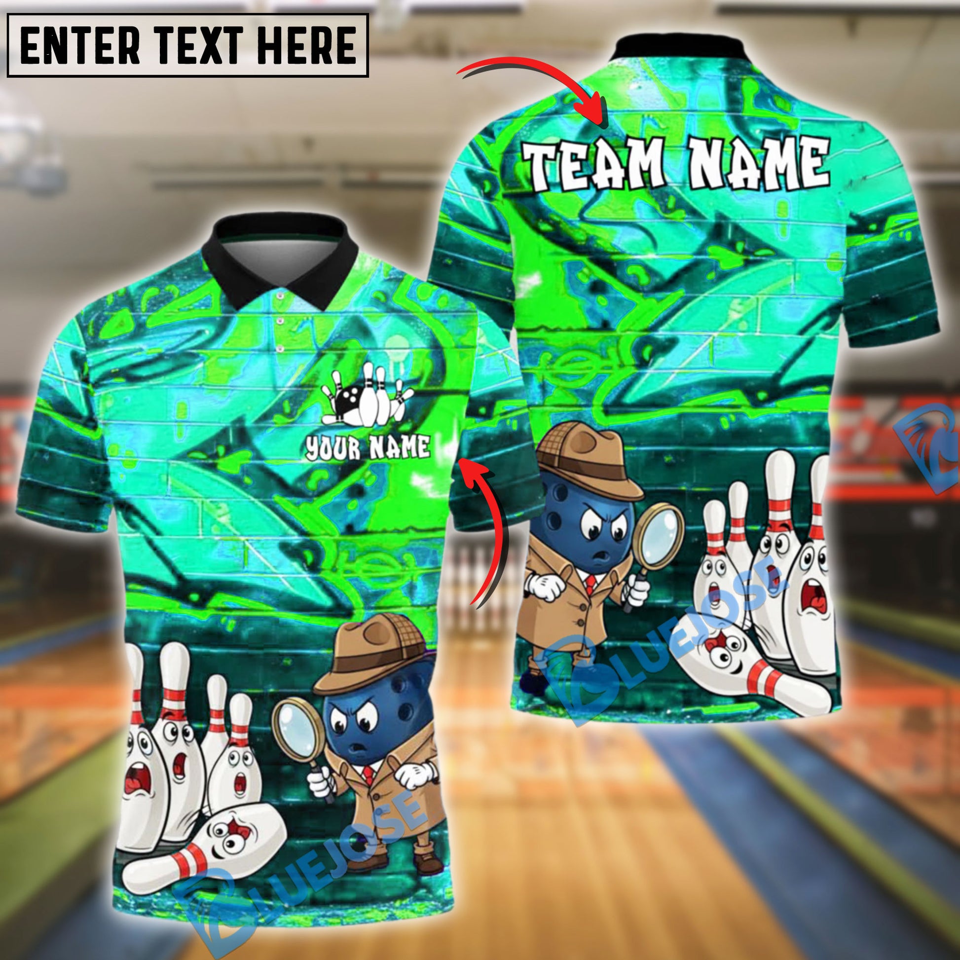 BlueJose Bowling Detective Ball Solving Pin Mystery Customized Name, Team Name 3D Shirt (4 Colors)