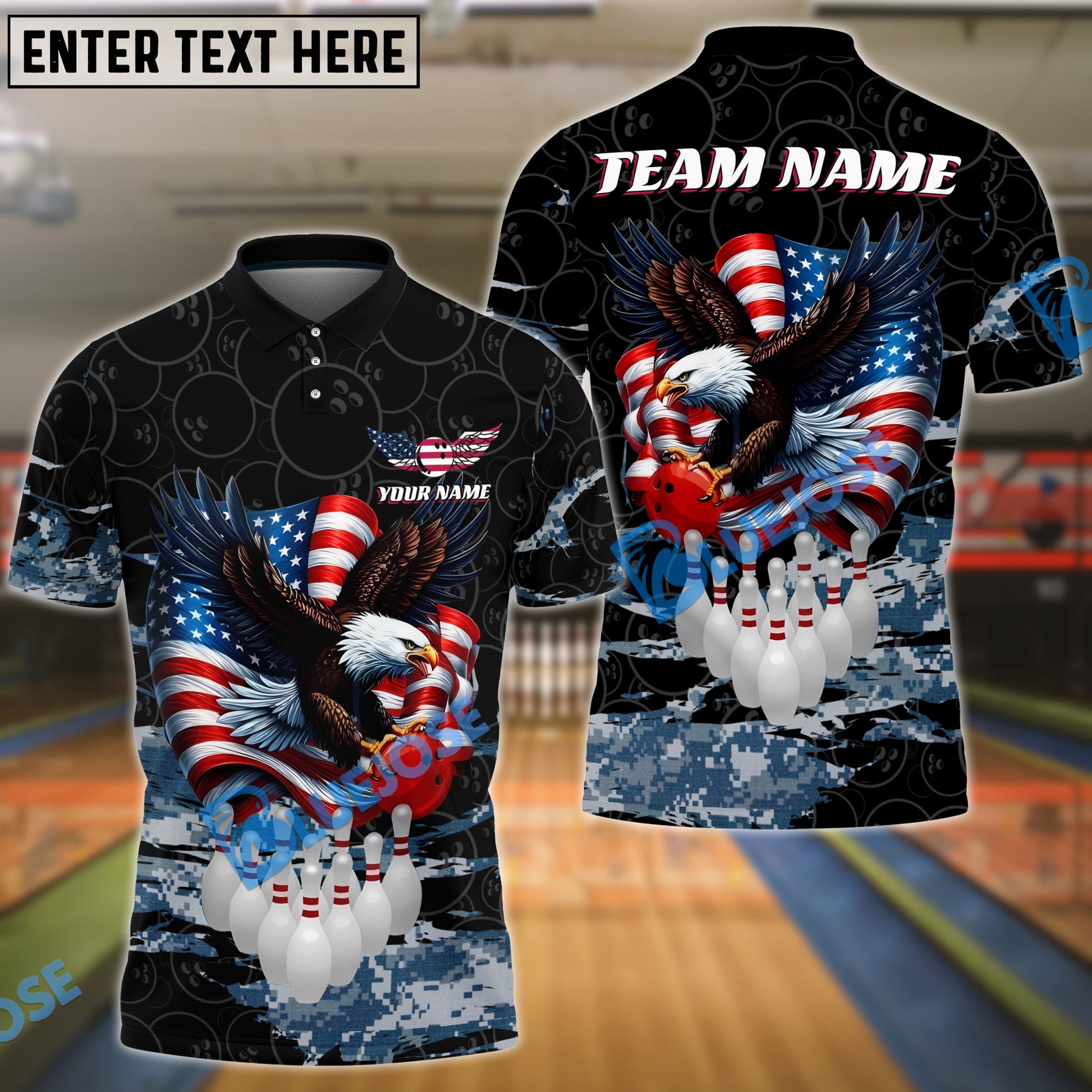 BlueJose Bowling Eagle American Flag Camo Customized Name, Team Name 3D Shirt (4 Colors)