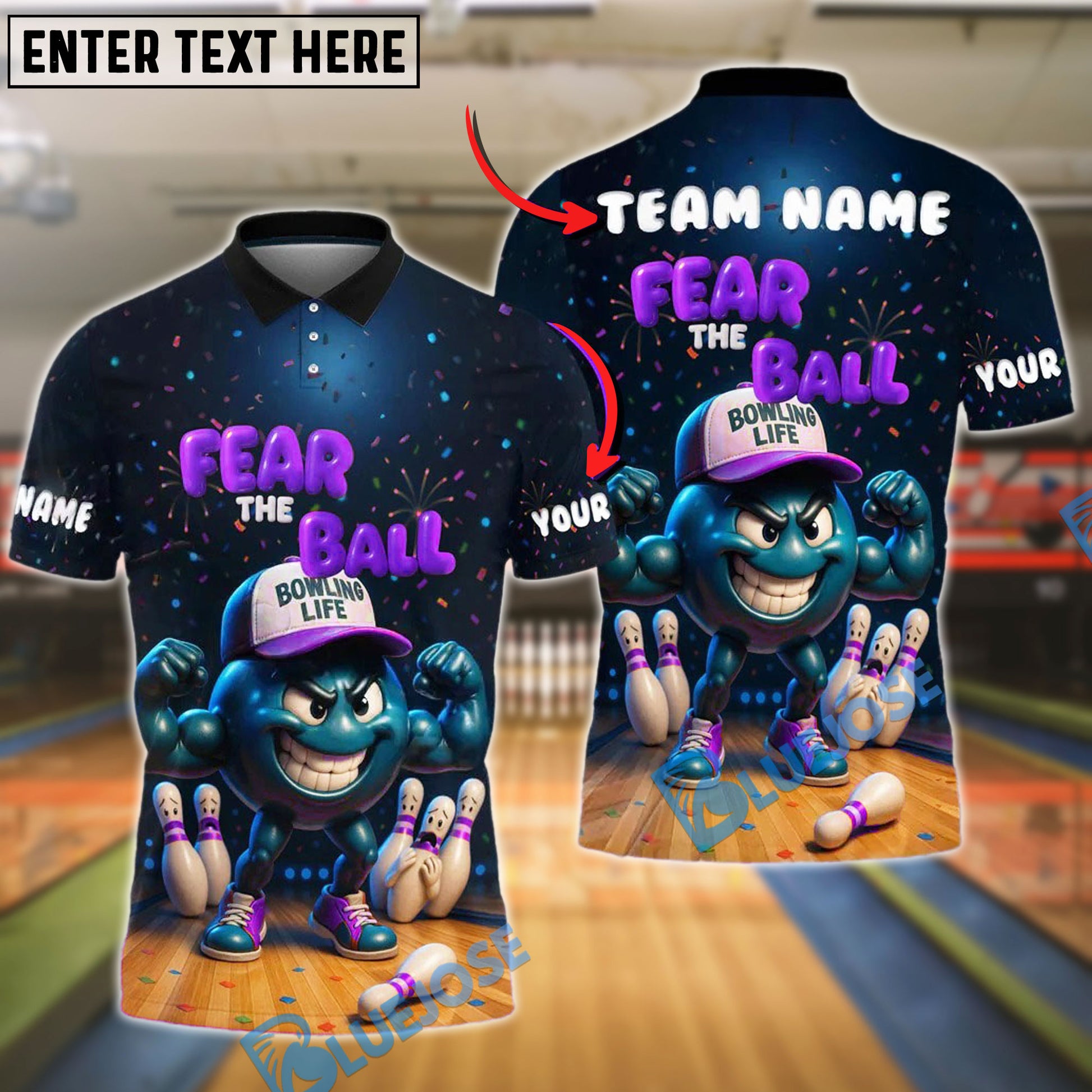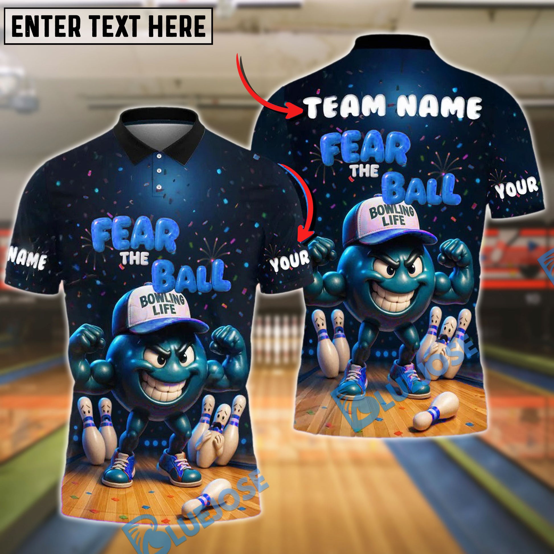 BlueJose Bowling Fear the Ball Cartoon Power Style Customized Name, Team Name 3D Shirt (4 Colors)