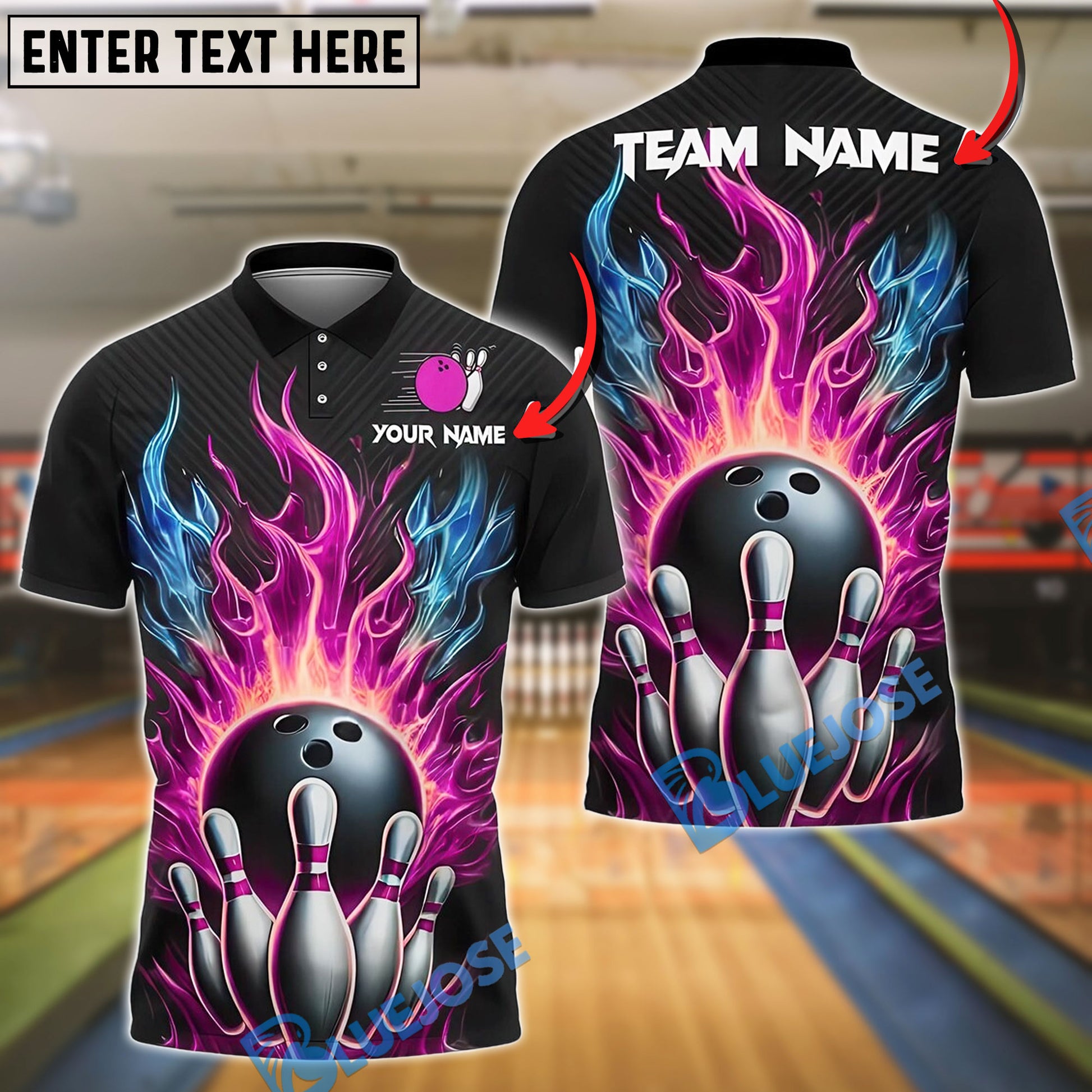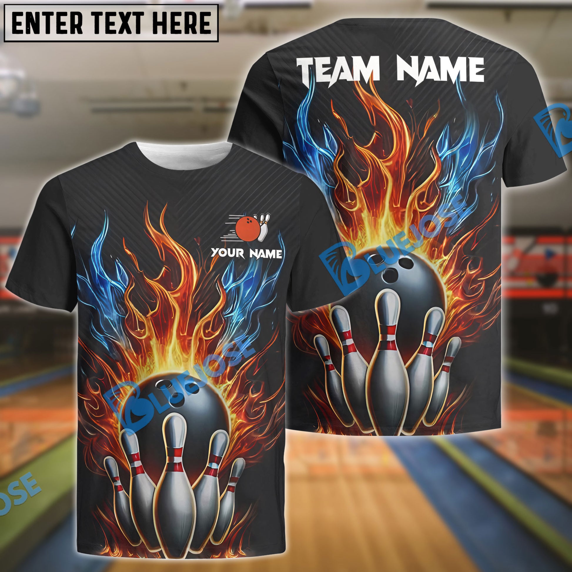 BlueJose Bowling Fireball Design Customized Name, Team Name 3D Shirt (4 Colors)