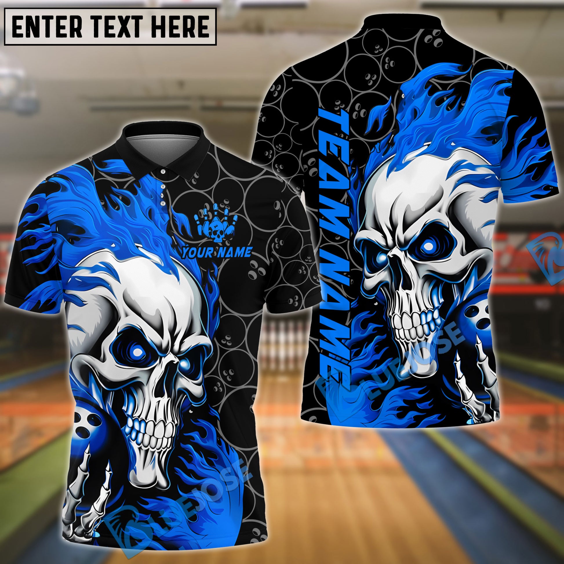 BlueJose Bowling Flaming Skull Strike Customized Name, Team Name 3D Shirt (4 Colors)