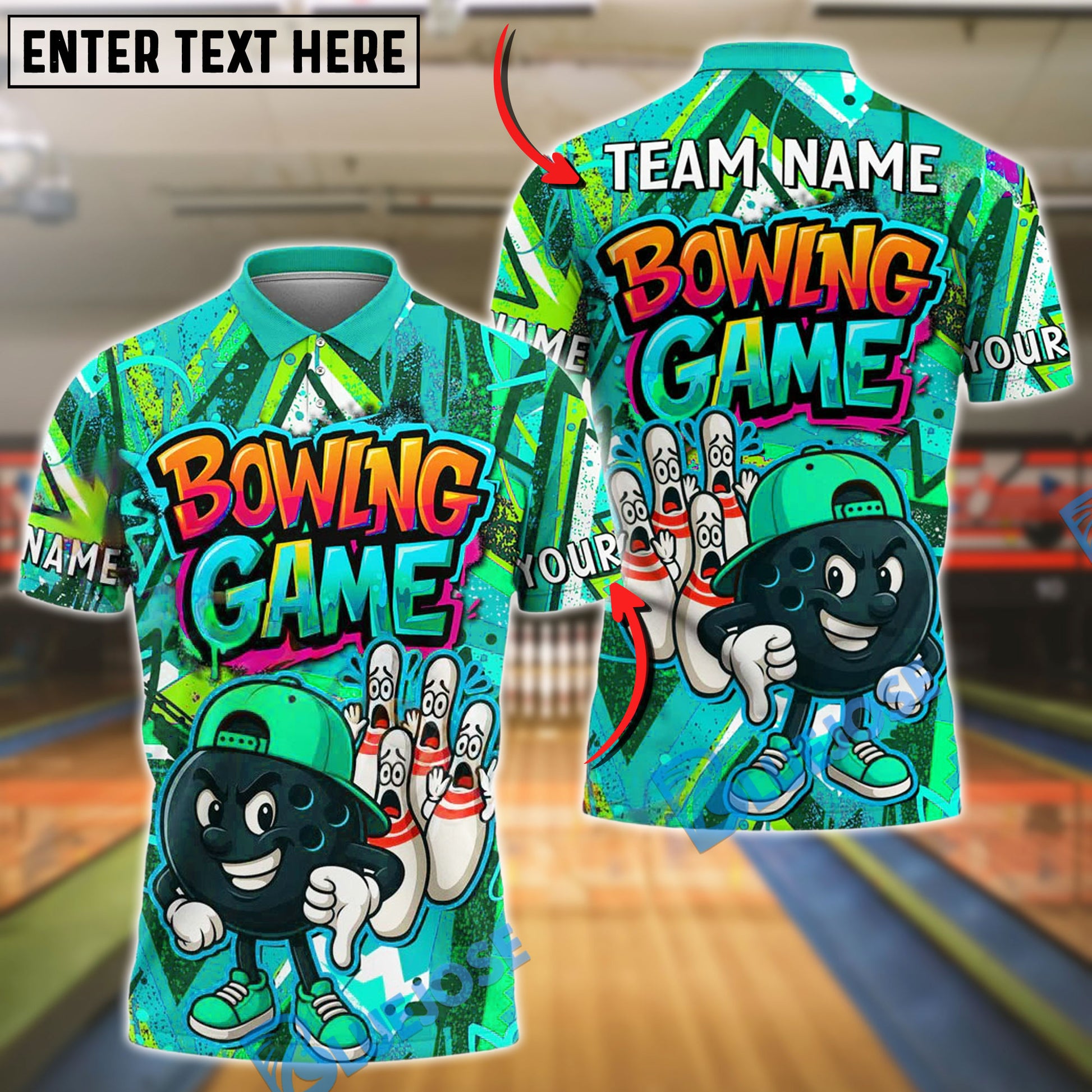 BlueJose Bowling Graffiti Style Cartoon Customized Name, Team Name 3D Shirt (4 Colors)