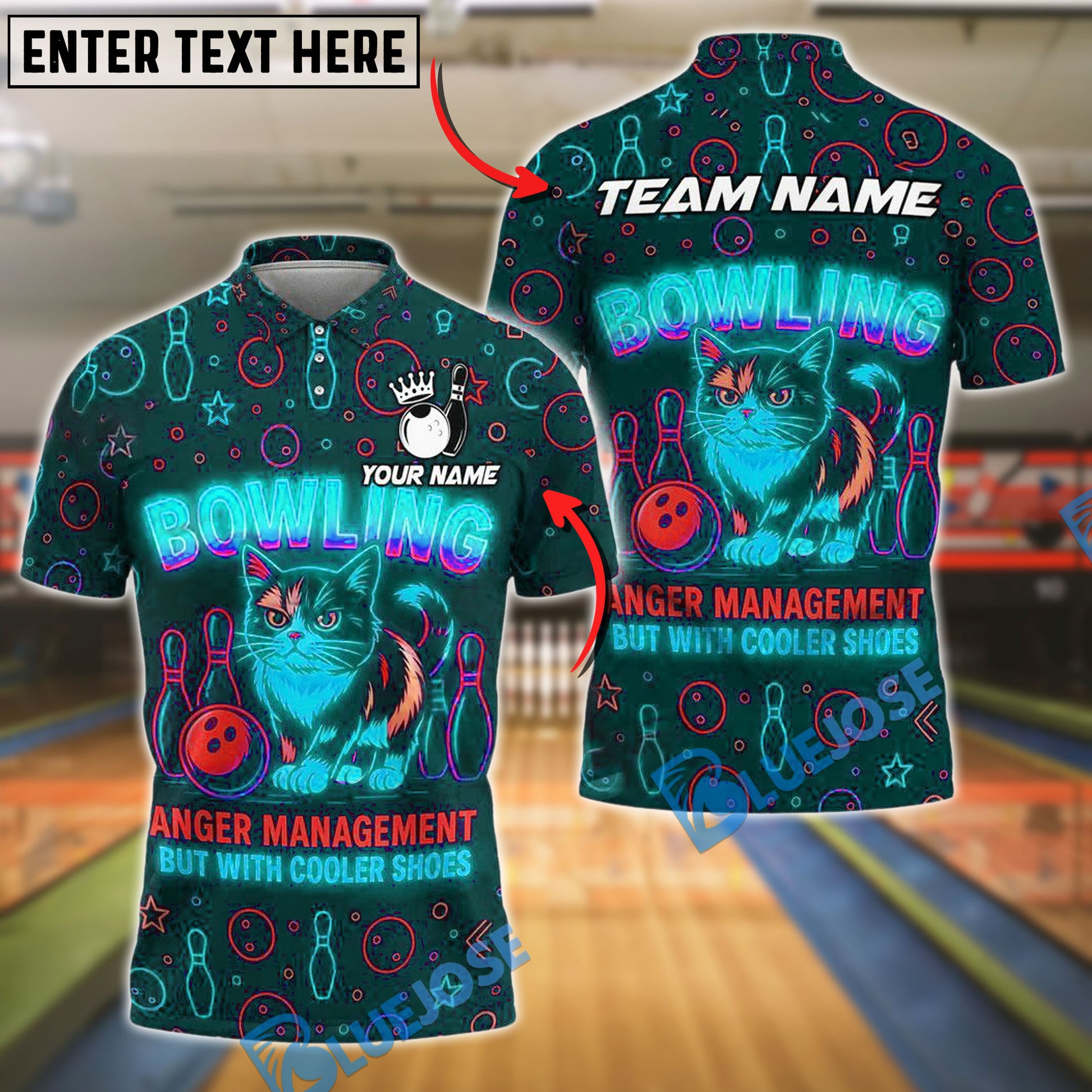 BlueJose Bowling Neon Cat Anger Management Edition Customized Name, Team Name 3D Shirt (4 Colors)