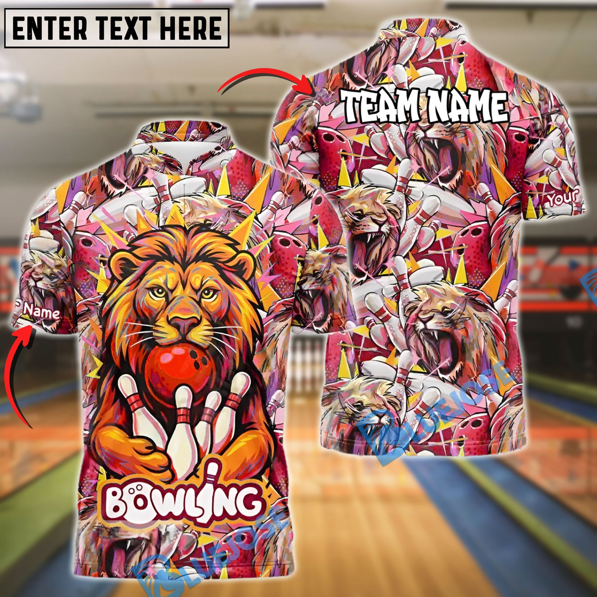 BlueJose Bowling Roaring Lion Customized Name, Team Name 3D Shirt (4 Colors)