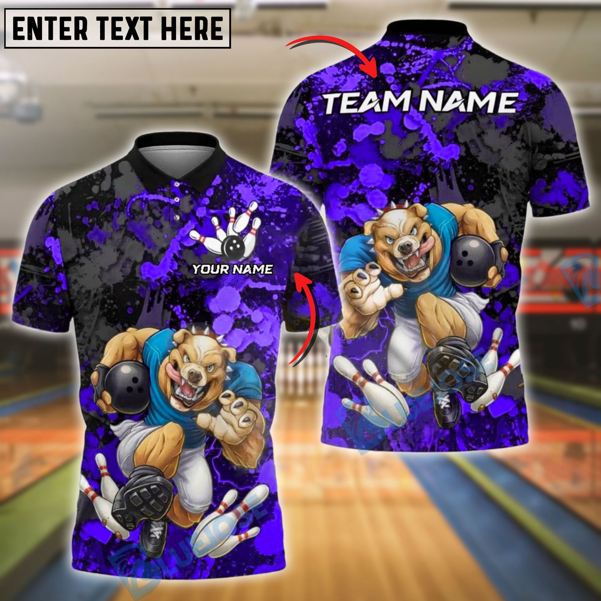 BlueJose Bowling Savage Dog Splatter Customized Name, Team Name 3D Shirt (4 Colors)