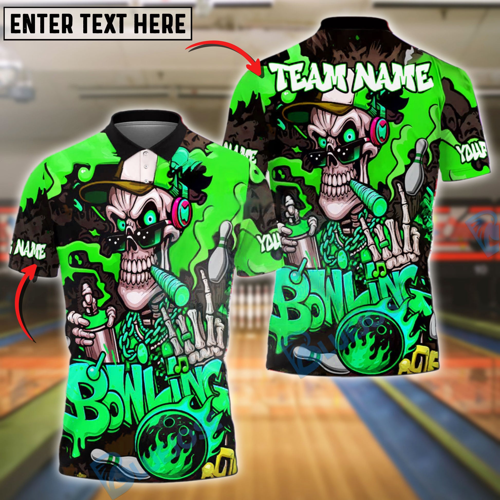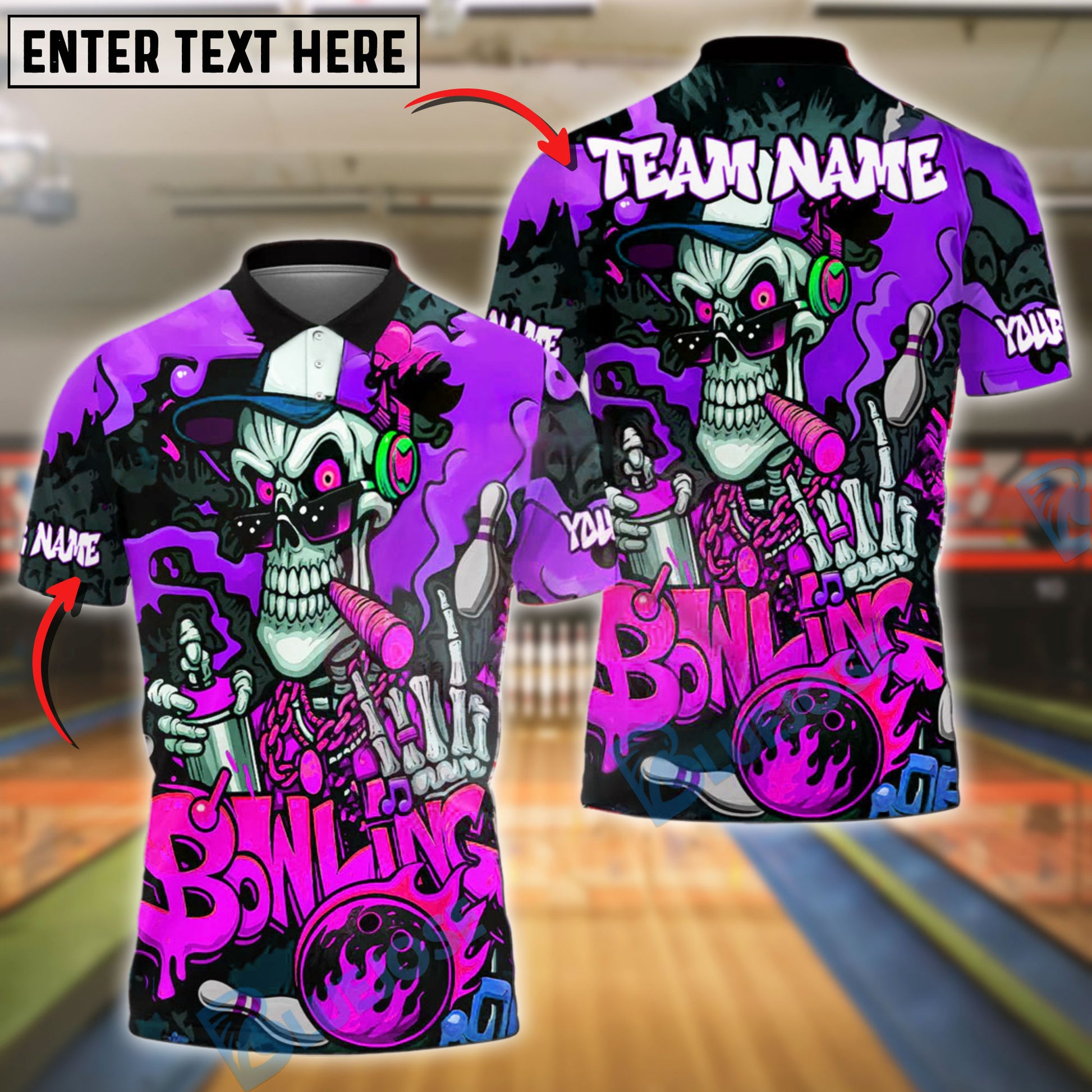 BlueJose Bowling Skeleton Graffiti Flames Style Customized Name, Team Name 3D Shirt (4 Colors)