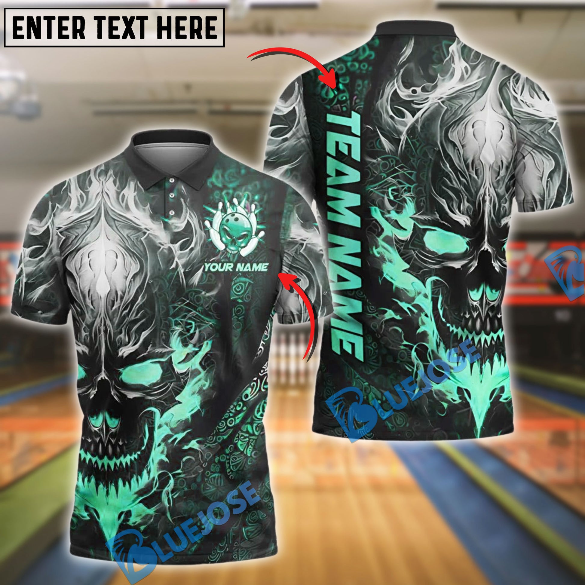 BlueJose Bowling Skull Flame Customized Name, Team Name 3D Shirt (4 Colors)