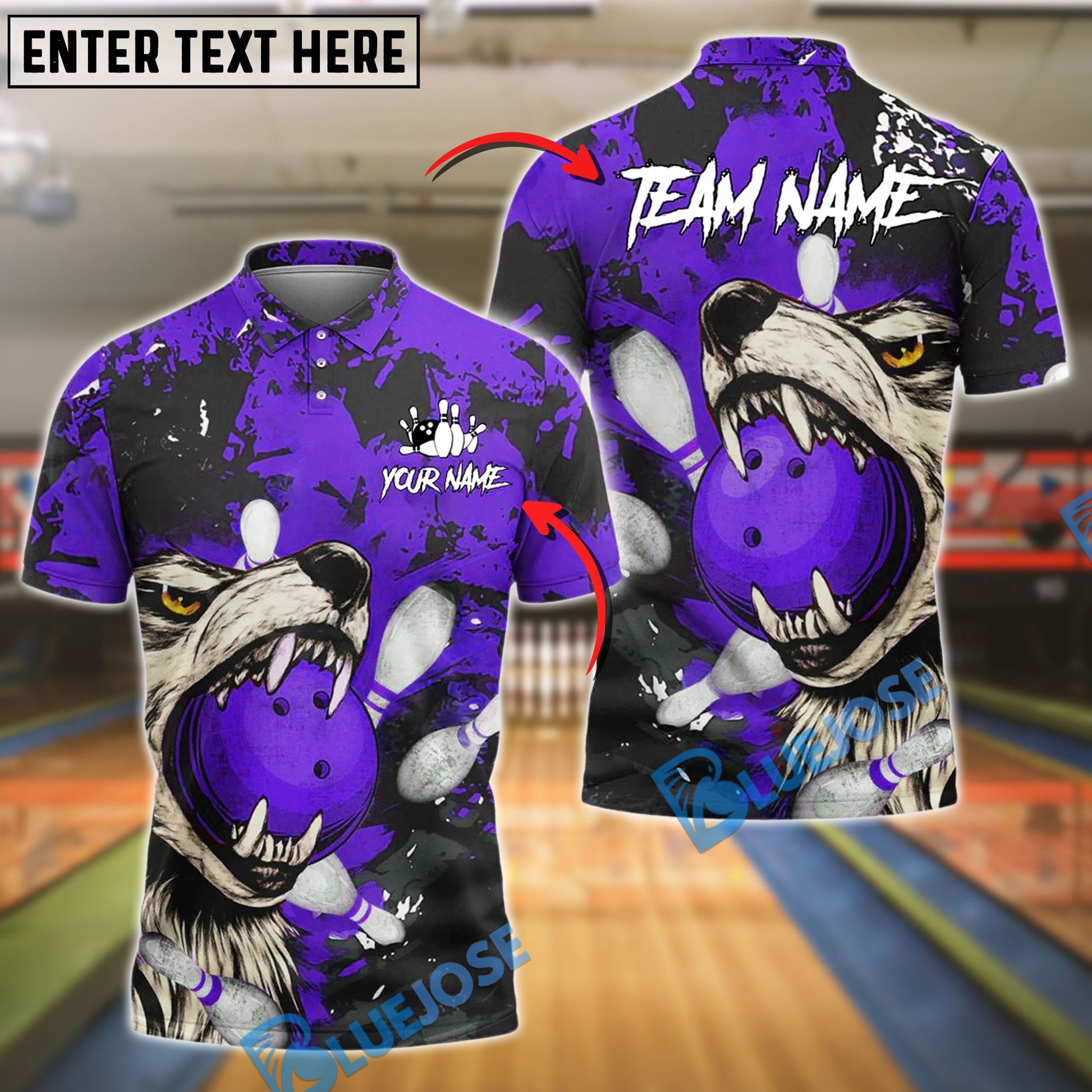 BlueJose Bowling Wolf Strike Customized Name, Team Name 3D Shirt (4 Colors)