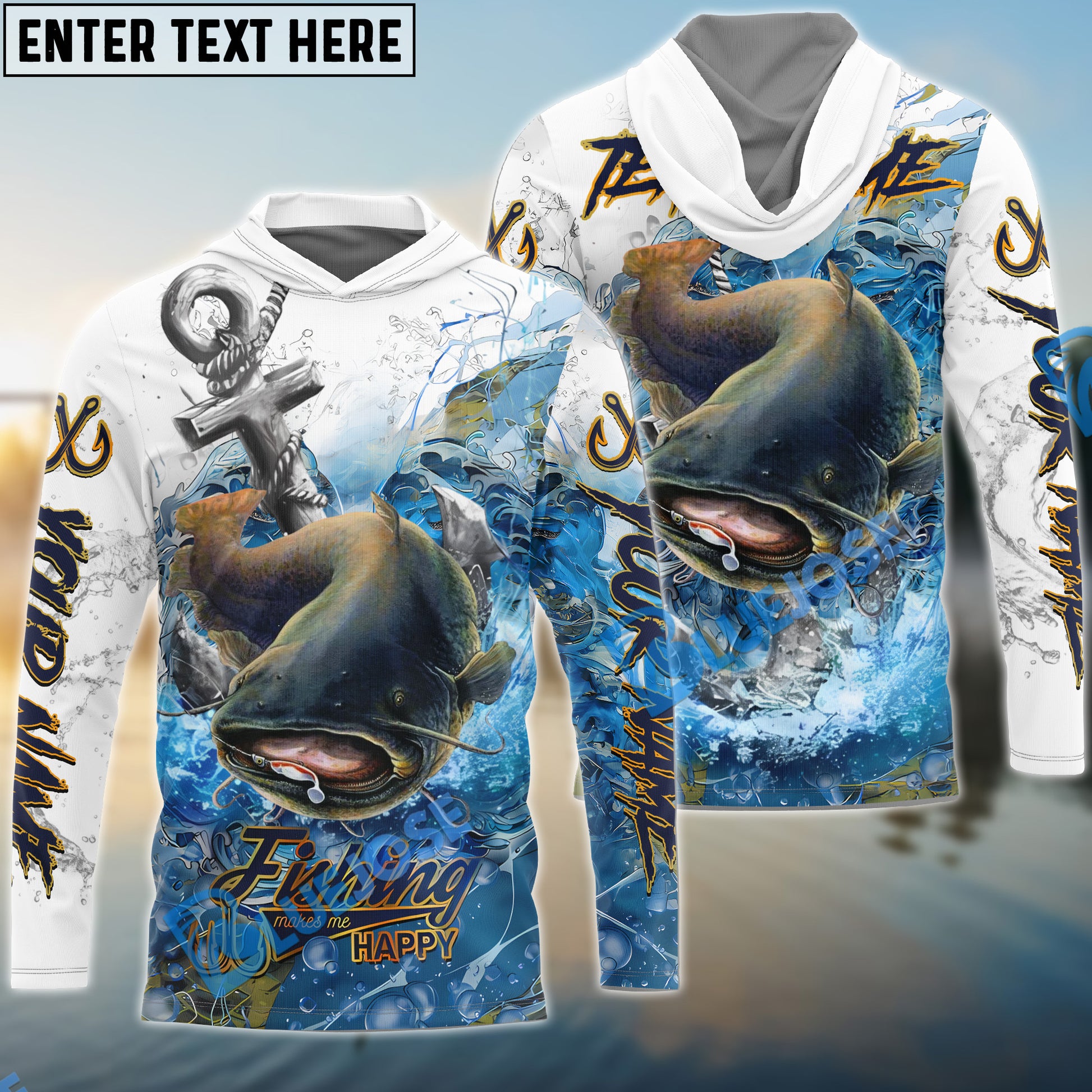 Bluejose Catfish Fishing Anchor Ocean Splash Design Name & Team Name 3D Shirts