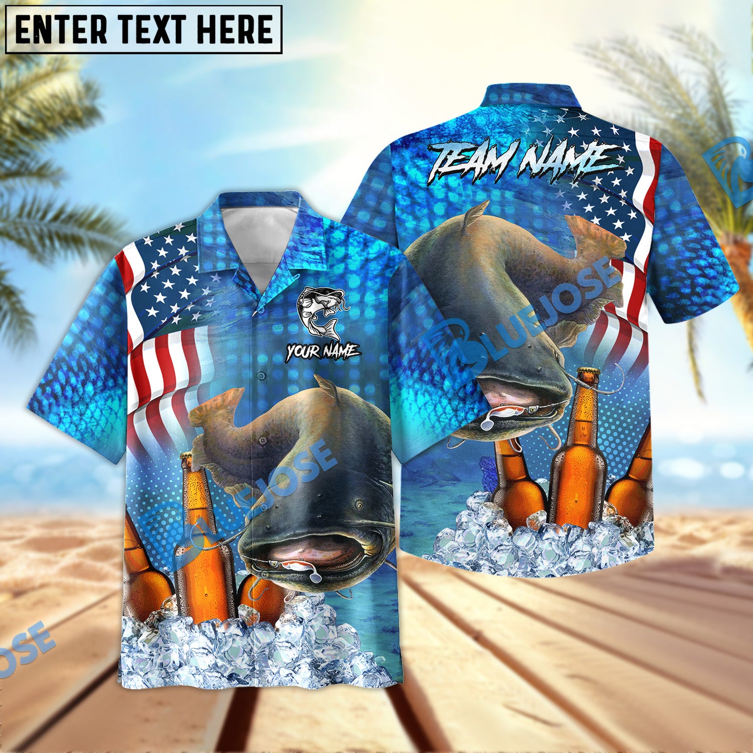 BlueJose Catfish Fishing Beer USA Flag Personalized All Over Print 3D Hawaiian Shirt